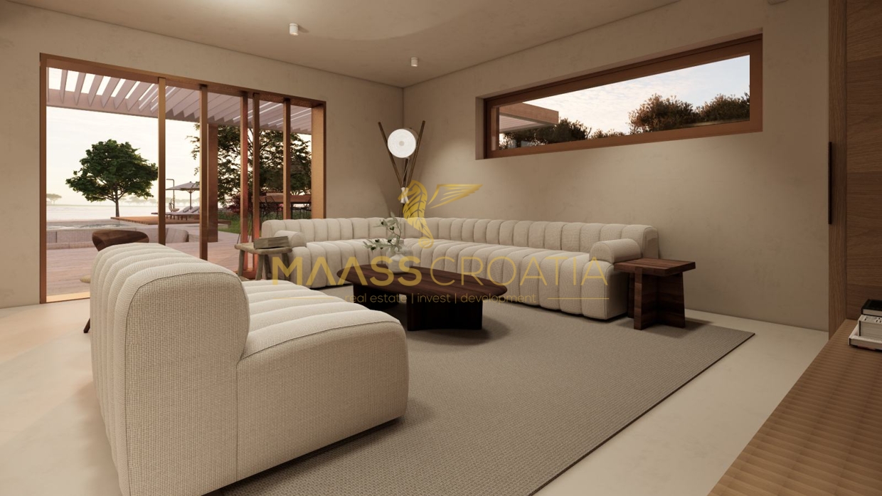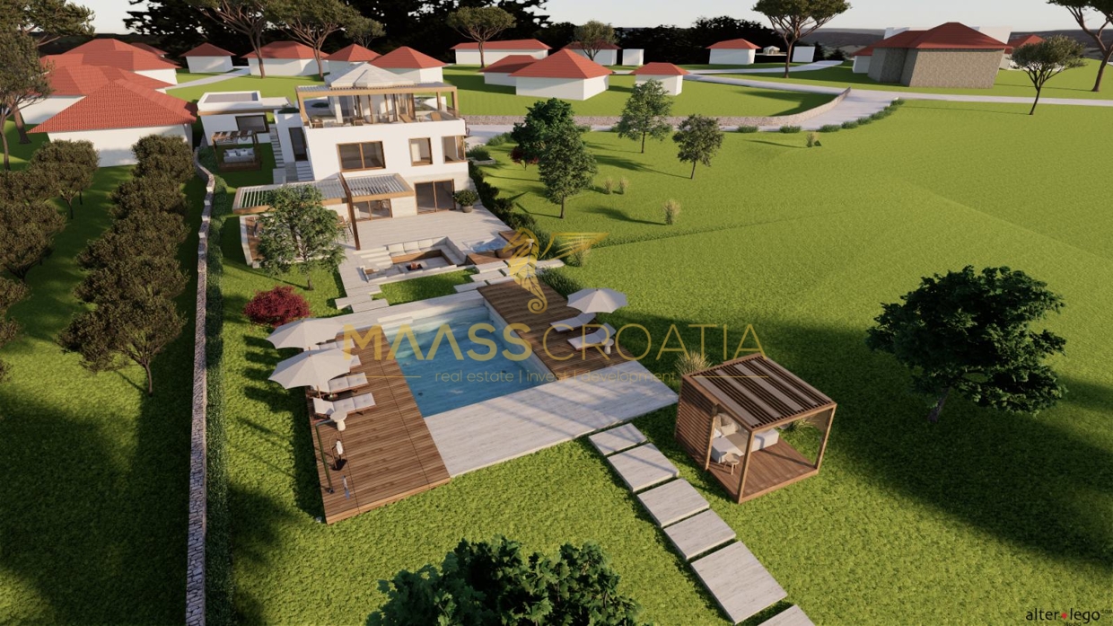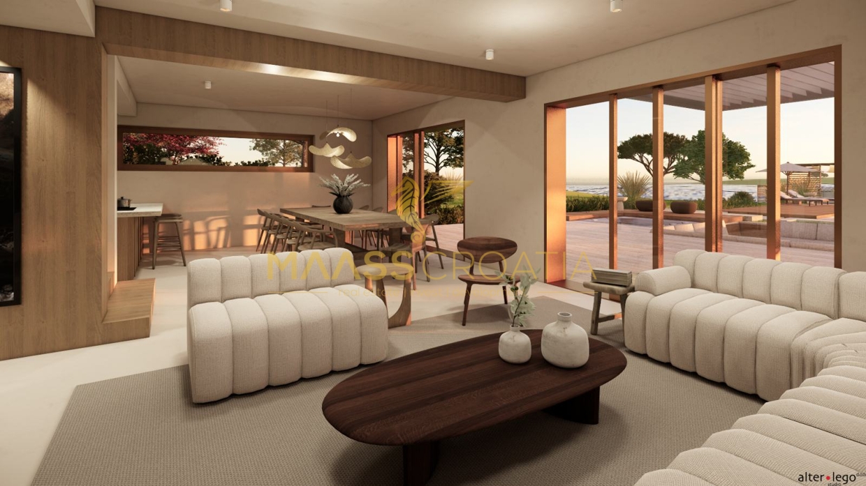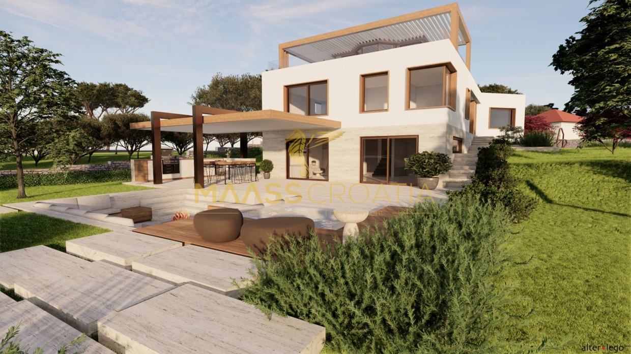 In Vodice, op een rustige locatie, staat een villa met modern design en architectuur en uitzicht op zee. De totale...