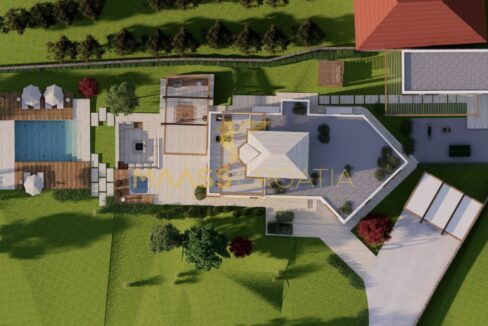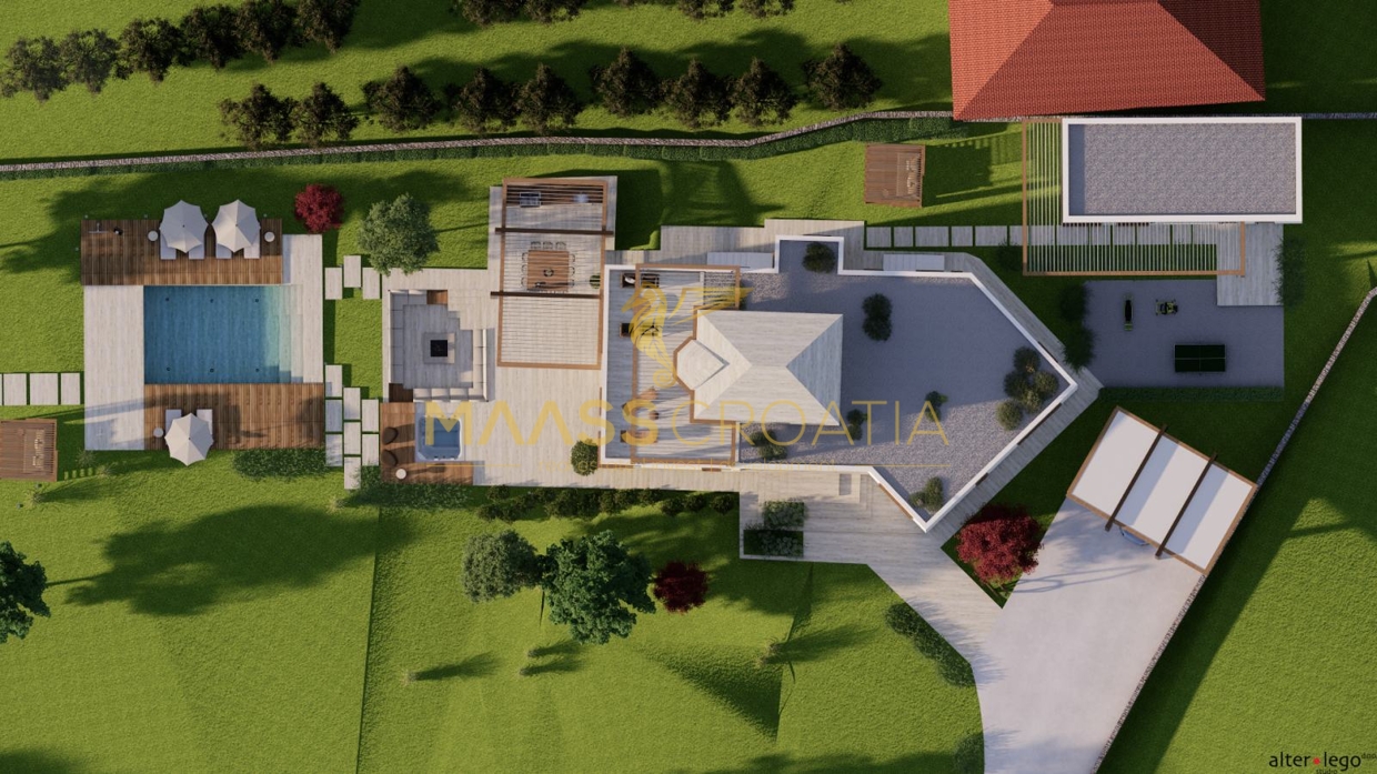 Het perceel zou een groot terras, een zonneterras met zwembad en meerdere parkeerplaatsen omvatten.