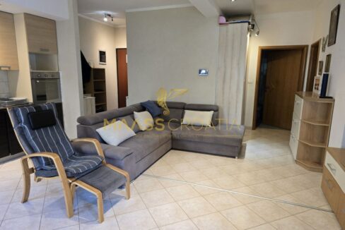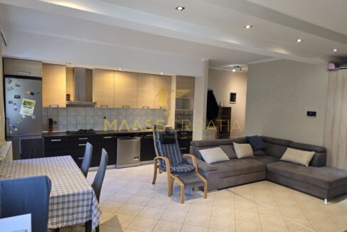 De flat heeft twee slaapkamers, een ruime woonkamer met eethoek en keuken, een badkamer en een overdekt terras met toegang tot de mooi aangelegde tuin van 50 m².