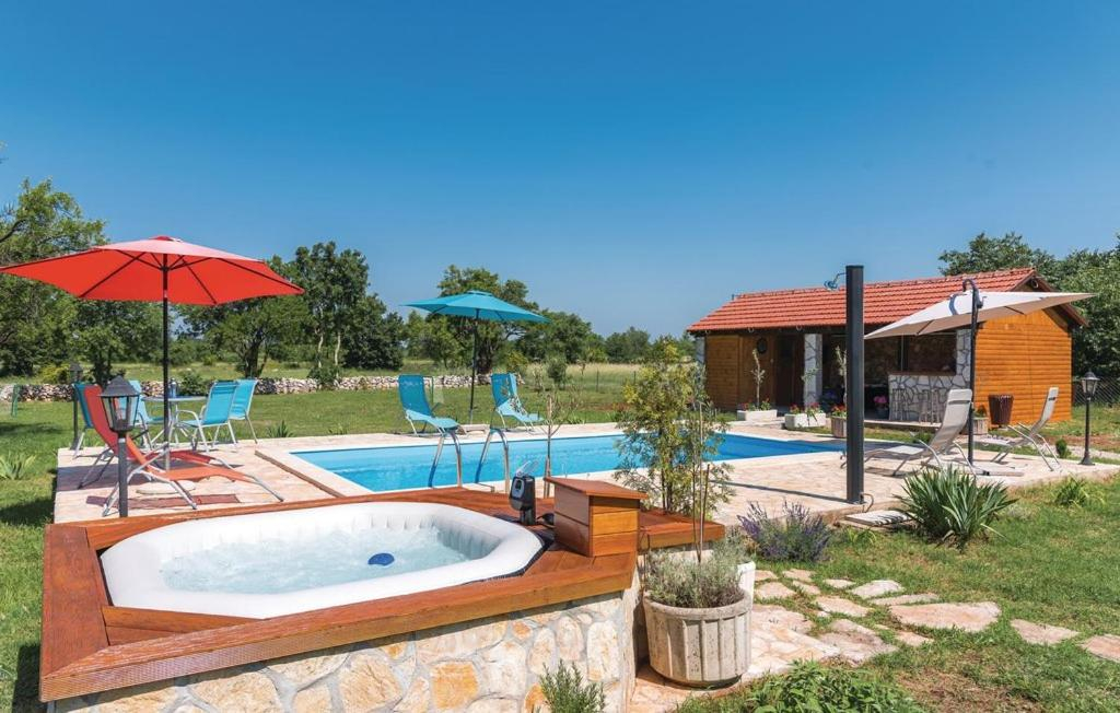 De stad Šibenik ligt op ca. 35 km en de zee op ca. 37 km van deze woning.
