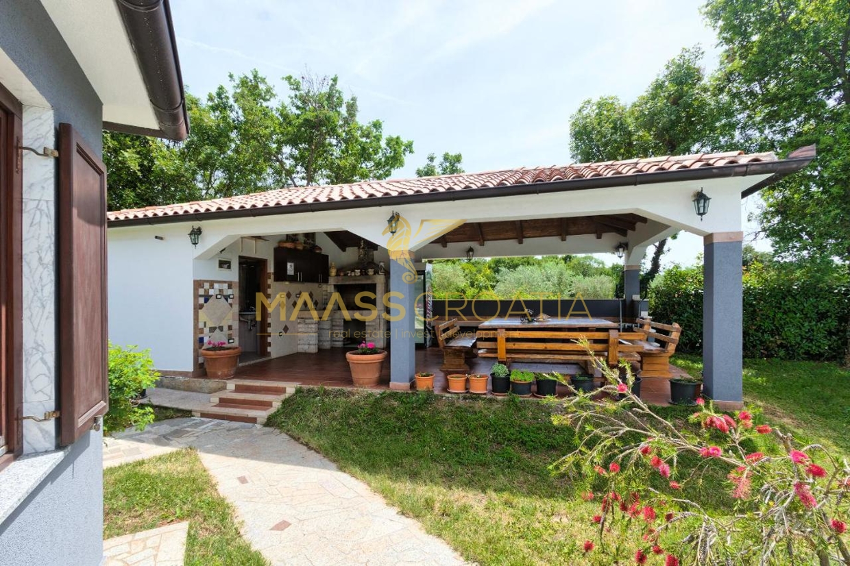 Het eerste huis bestaat uit drie slaapkamers, een keuken met woonkamer, drie badkamers en een groot overdekt terras van 60 m² met uitzicht op het zwembad en een deel van de tuin.