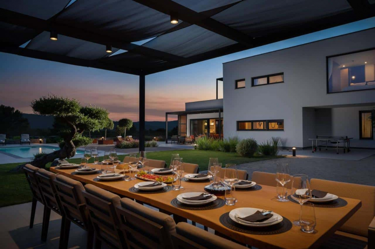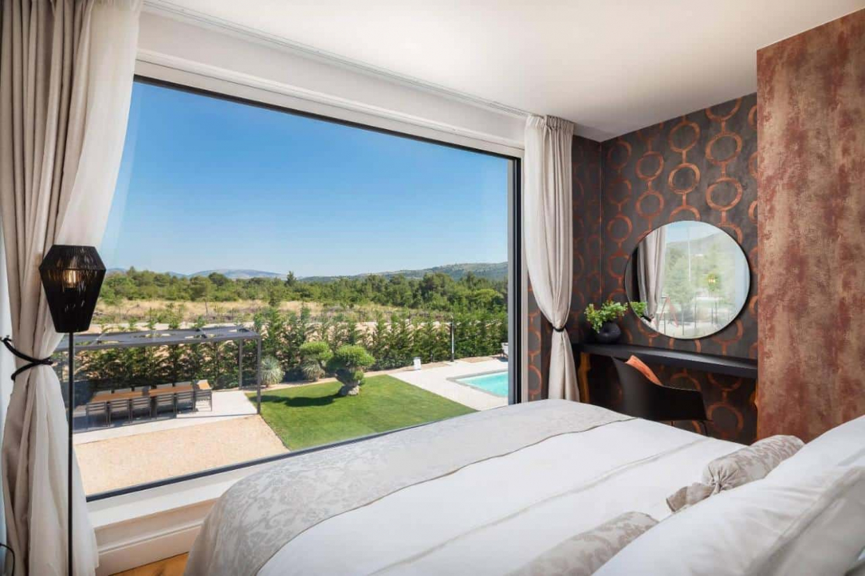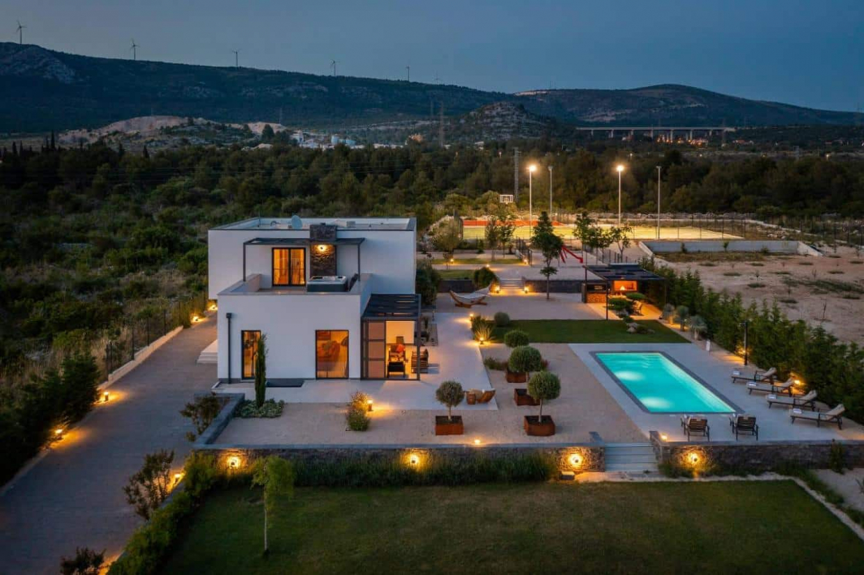 Juweel van witte steen met zwembad en panoramisch uitzicht op zee in Novalja