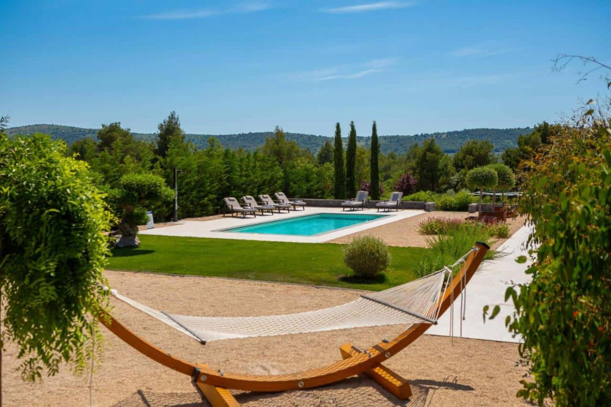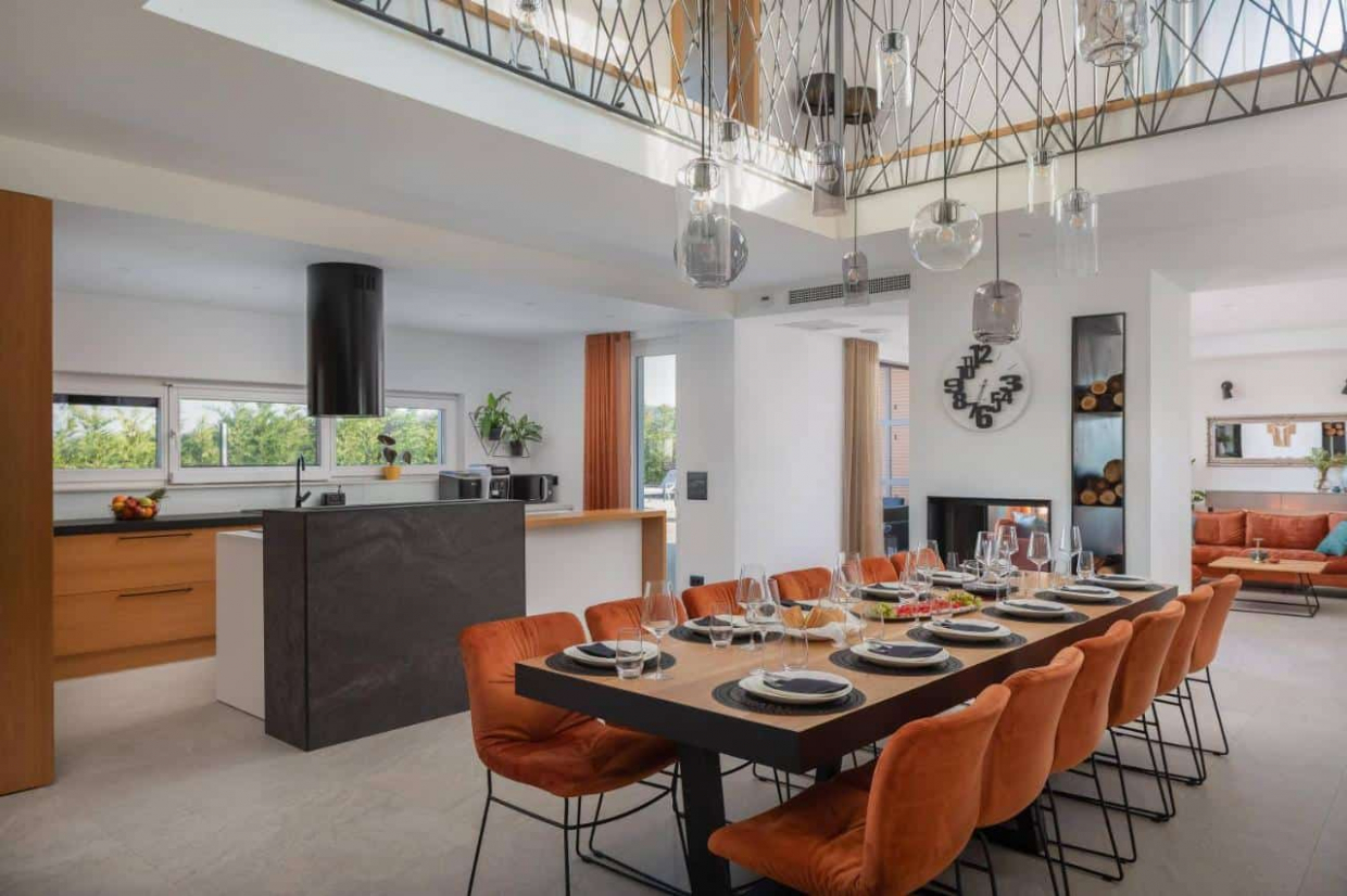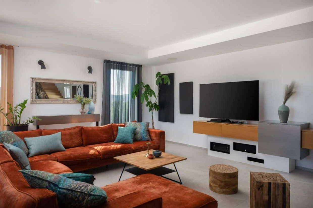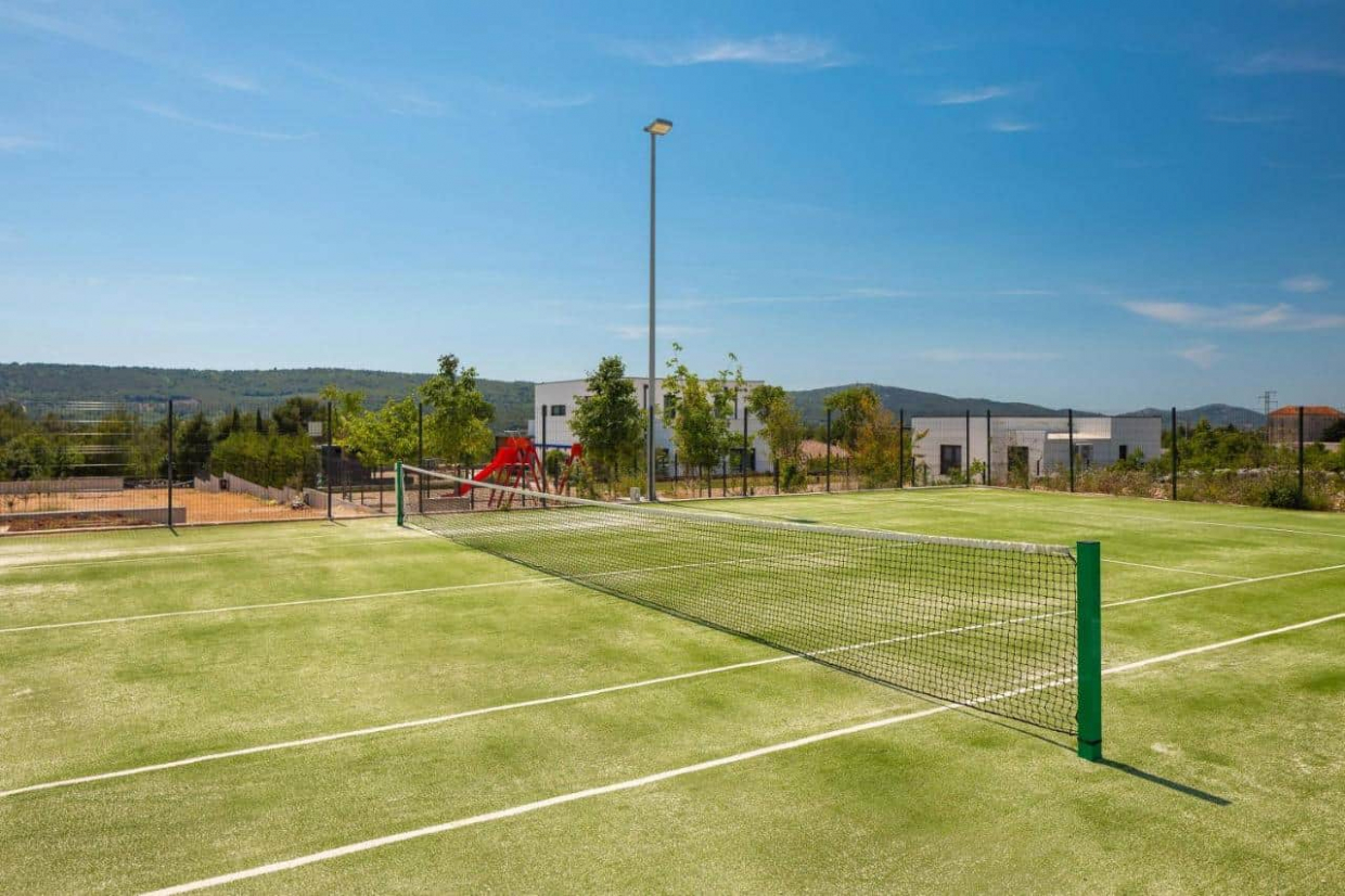 Juweel van witte steen met zwembad en panoramisch uitzicht op zee in Novalja