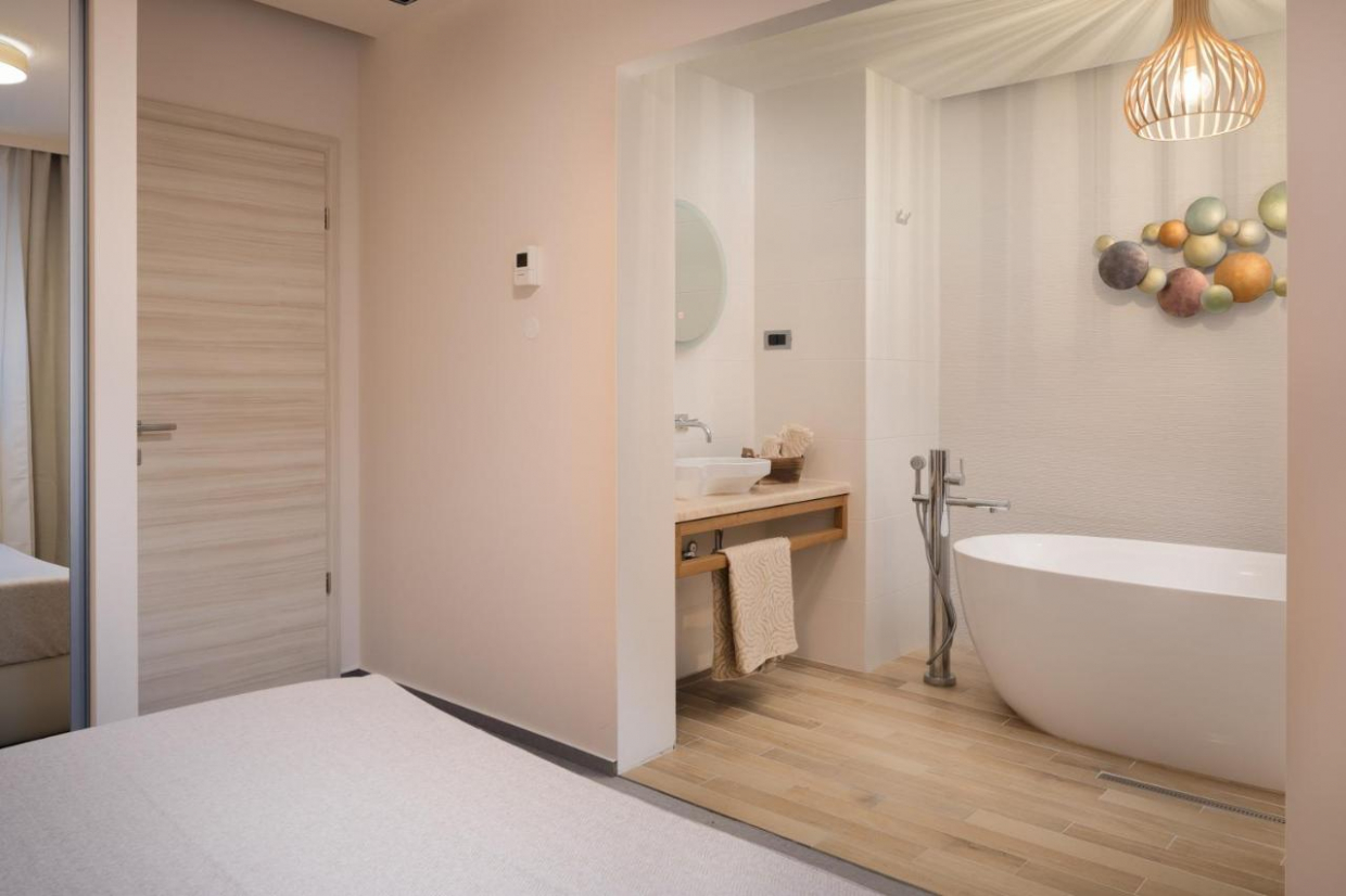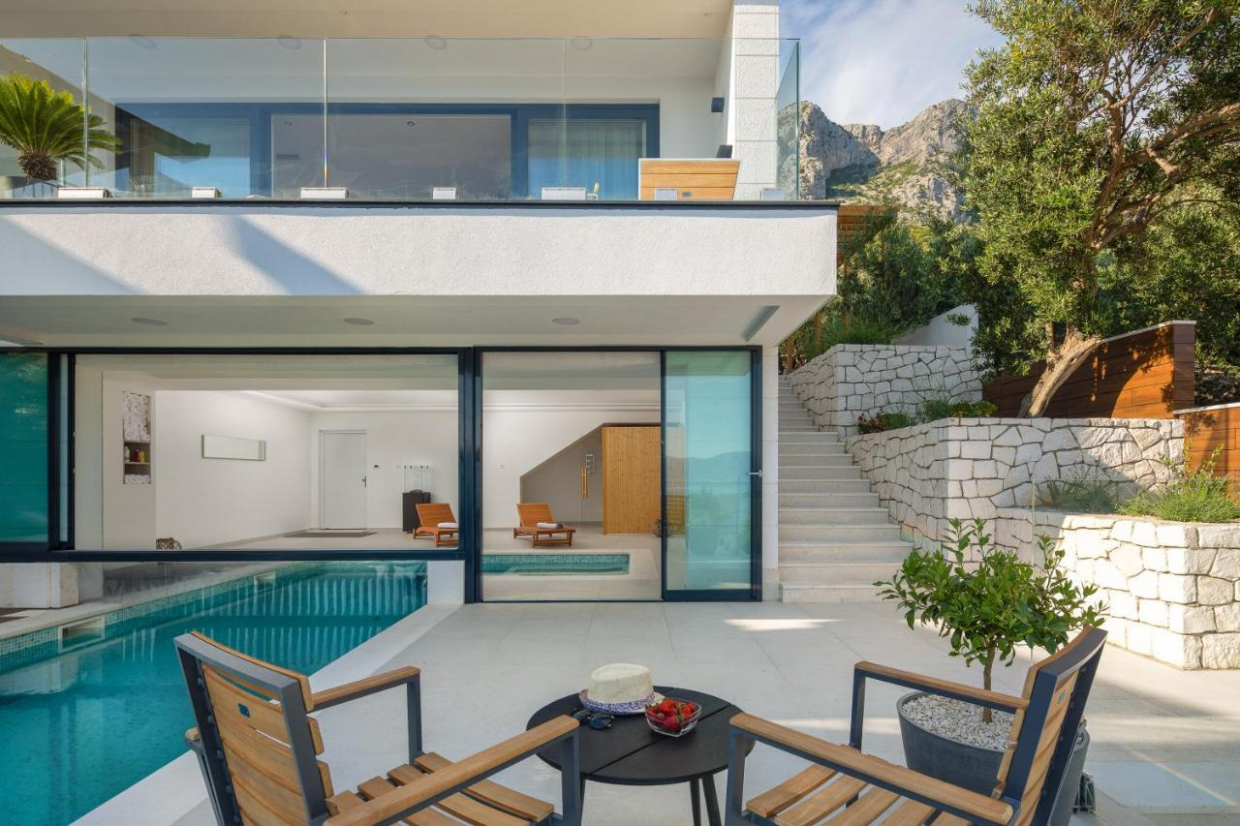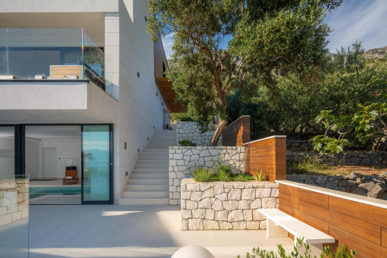 In Vodice, op een rustige locatie, staat een villa met modern design en architectuur en uitzicht op zee. De totale...