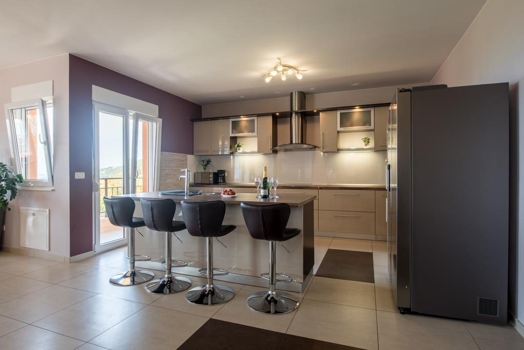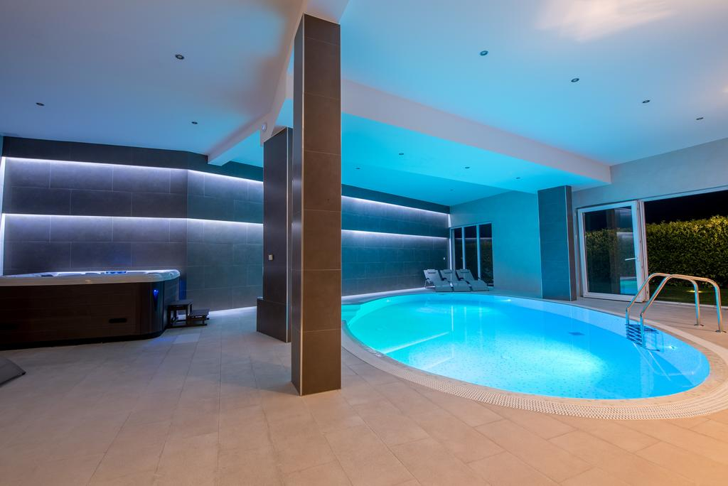 Dit huis van 3 verdiepingen met een grote tuin en een ruime parkeerplaats zal aan al je verwachtingen voldoen. Het heeft 5 slaapkamers en 7 badkamers en ligt op 10 km van het stadscentrum en 7 km van het eerste strand. Er is een groot zwembad op het hoofdterras op de begane grond, dat verbonden is met een terras met een overdekte pergola en een stenen barbecue. Een echt middelpunt voor entertainment. Het zwembad ligt aan de achterkant van het huis. Het prachtige uitzicht op zee is te zien vanuit de voortuin, de twee balkons vanuit de woonkamer en de slaapkamers op de bovenverdiepingen. Er is ook een binnenzwembad en zelfs een kinderspeelplaats. Daarnaast is er een sauna en een jacuzzi. Voor degenen die op zoek zijn naar extra entertainmentmogelijkheden is er ook een ingebouwde fitnessruimte en een biljartkamer. Het interieur van het huis is modern en uitgerust met hoogwaardige materialen en huishoudelijke apparaten, aangevuld met airconditioning. Het interieur is goed doordacht en ontworpen door de ruimte nog groter te laten lijken en tegelijkertijd voldoende licht en helderheid te bieden.