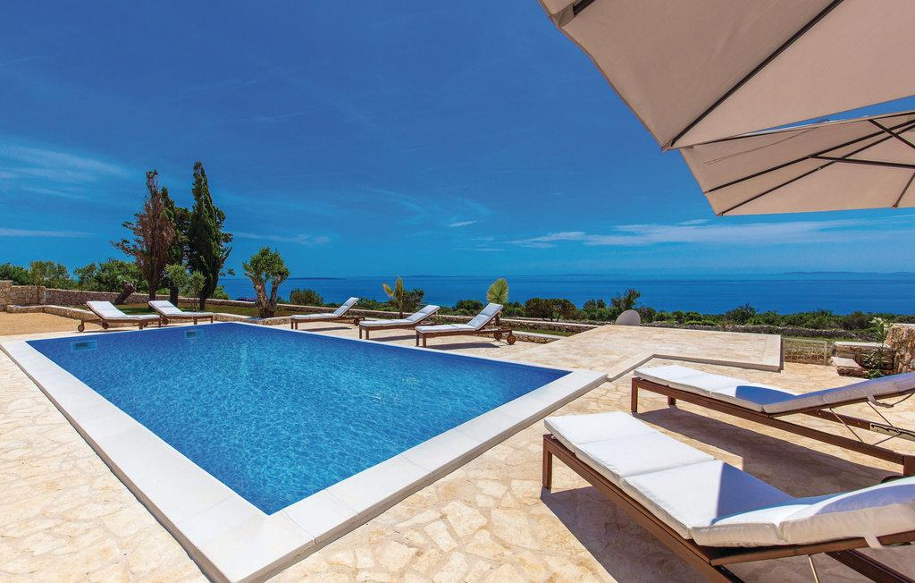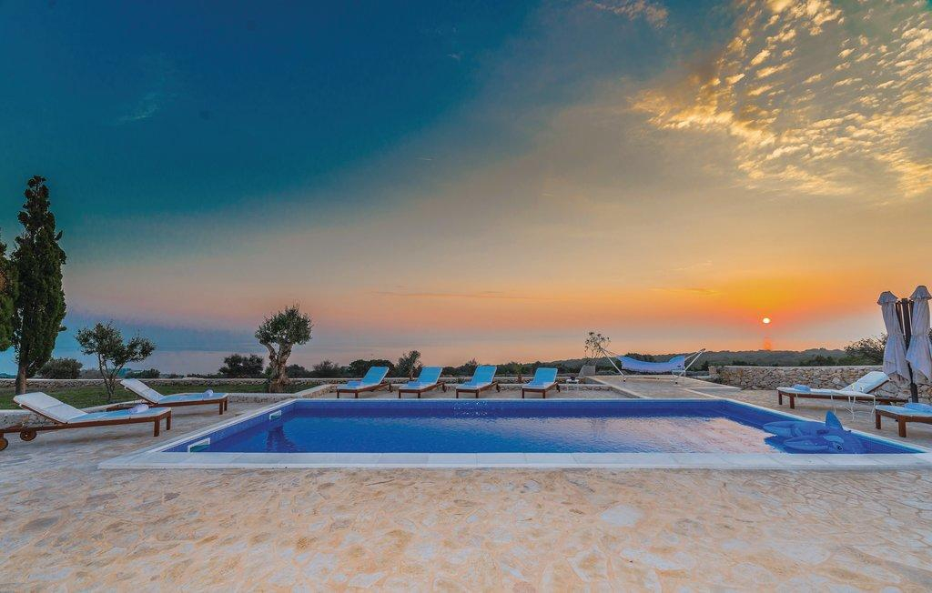 In Novalja, op het eiland Pag, vind je dit prachtige juweel van witte steen, dat een waar meesterwerk is en gebouwd is op een perceel van 1200 m2.