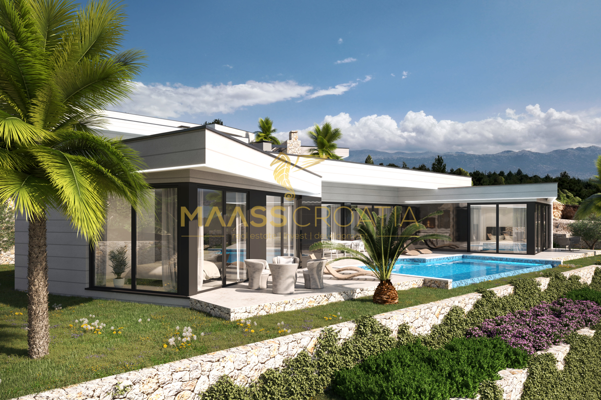 De luxe bungalow met plat dak ligt in het prachtige dorp Posedarje en wordt momenteel gebouwd. De oplevering is gepland voor mei 2025.