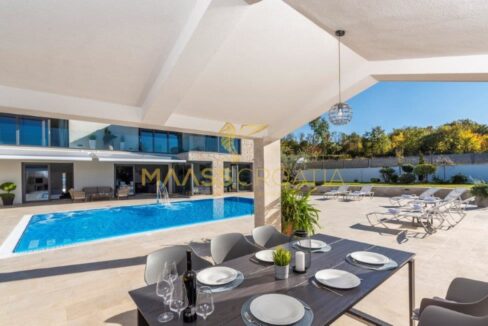 De villa staat op een perceel van 1502 m² en biedt 447 m² woonruimte en een zwembad van 60 m².