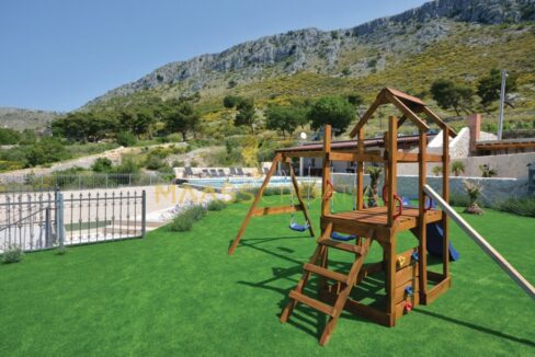 Op het 1500 m² grote perceel hebben gasten toegang tot het zwembad, de speeltuin, de ligweide en de buitenbarbecue.
