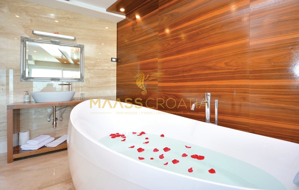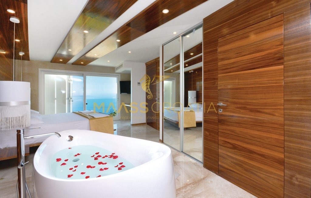 Deze bijzondere en mooie, luxe villa met zwembad in Podstrana heeft dankzij de uitstekende ligging een prachtig uitzicht op de zee, de eilanden en de stad Split.