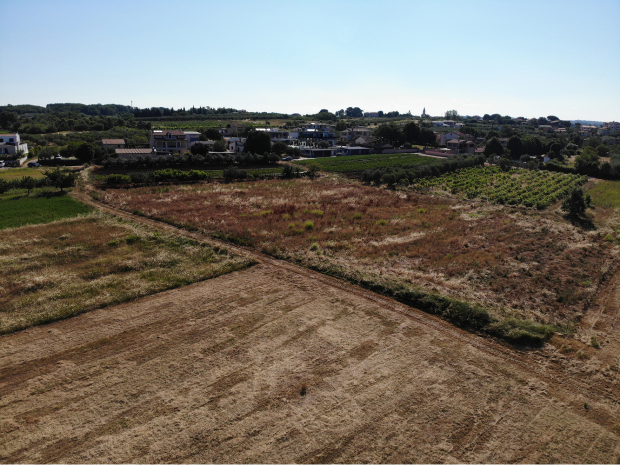 Het perceel is licht hellend naar de zee, wat een prachtig uitzicht garandeert, terwijl de infrastructuur direct aan de grens/ingang van het perceel ligt. De afstand tot de zee is 6,5 km, Poreč 13 km, Rovinj 45 km en de luchthaven van Pula 60 km.Bouwkavel- 1.019 m2 – totale oppervlakte