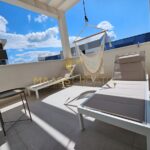 De flat heeft ongeveer 95 m² woonoppervlak en bestaat uit een entree, een hal, een open keuken met eethoek en een ruime woonkamer met directe toegang tot het overdekte terras en het gemeenschappelijke zwembad.