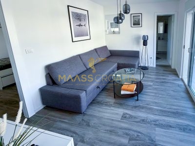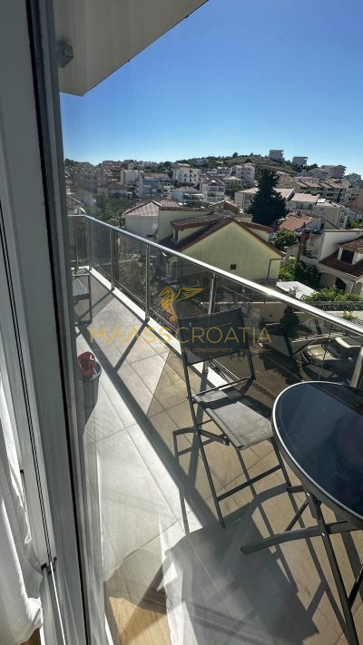 De flat op de eerste verdieping maakt indruk met zijn helderheid en het mooie balkon met uitzicht op zee.