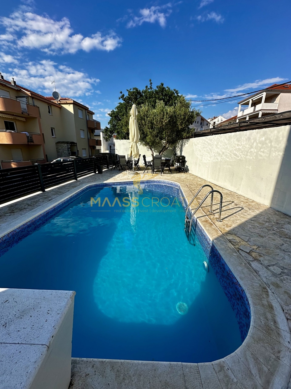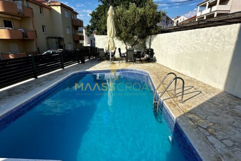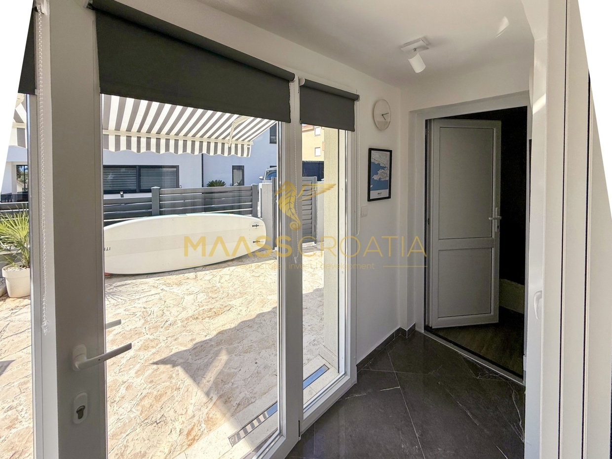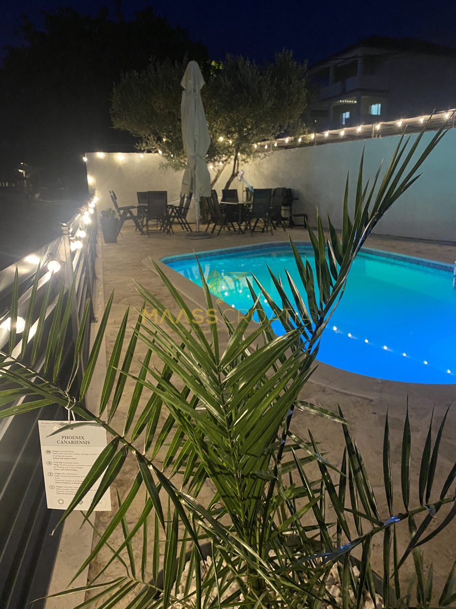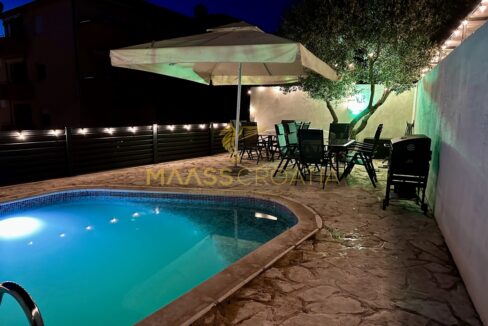 Dit moderne vakantiehuis is gebouwd in 2019 en biedt alles wat je maar kunt wensen voor een perfecte vakantie. Het huis bestaat uit drie comfortabele appartementen, sommige met uitzicht op zee, en heeft een zoutwaterzwembad, wasmachines en drogers, evenals vijf privéparkeerplaatsen. Een groot terras met parasol en gezellige zitjes nodigt uit om te vertoeven. Elk appartement heeft ook een eigen balkon.