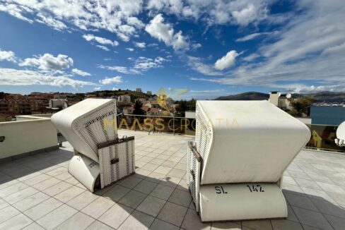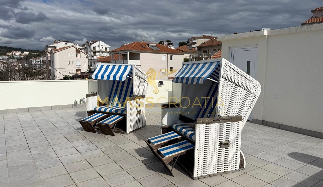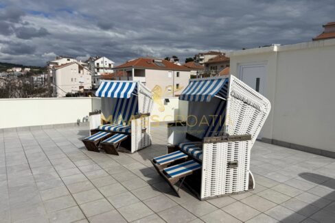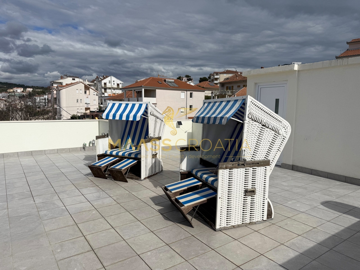 Geniet van de zonsondergang in de strandstoelen op het dakterras van 75 m² – een plek om te ontspannen en je goed te voelen. Alle appartementen zijn volledig ingericht en van alle gemakken voorzien
