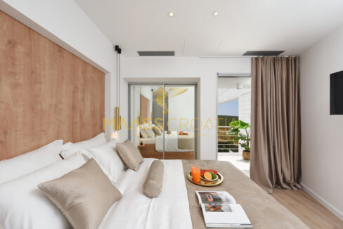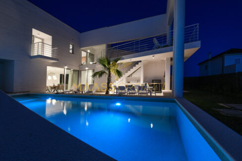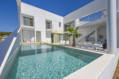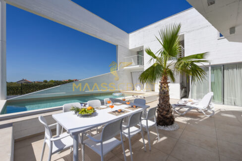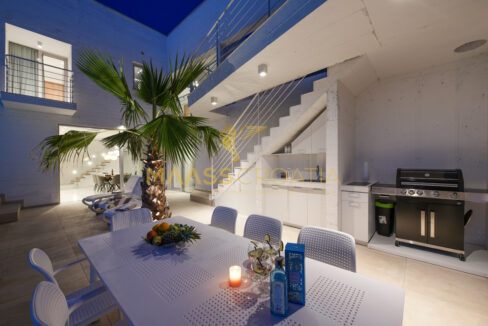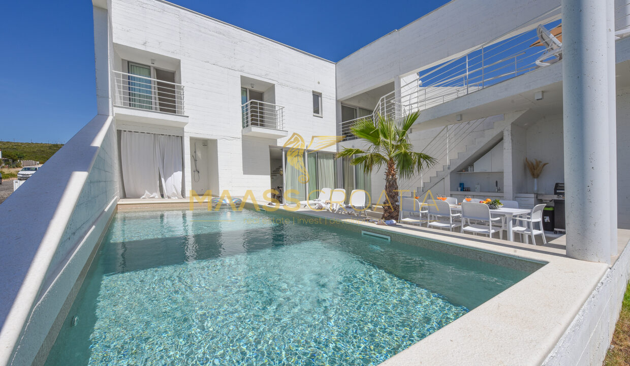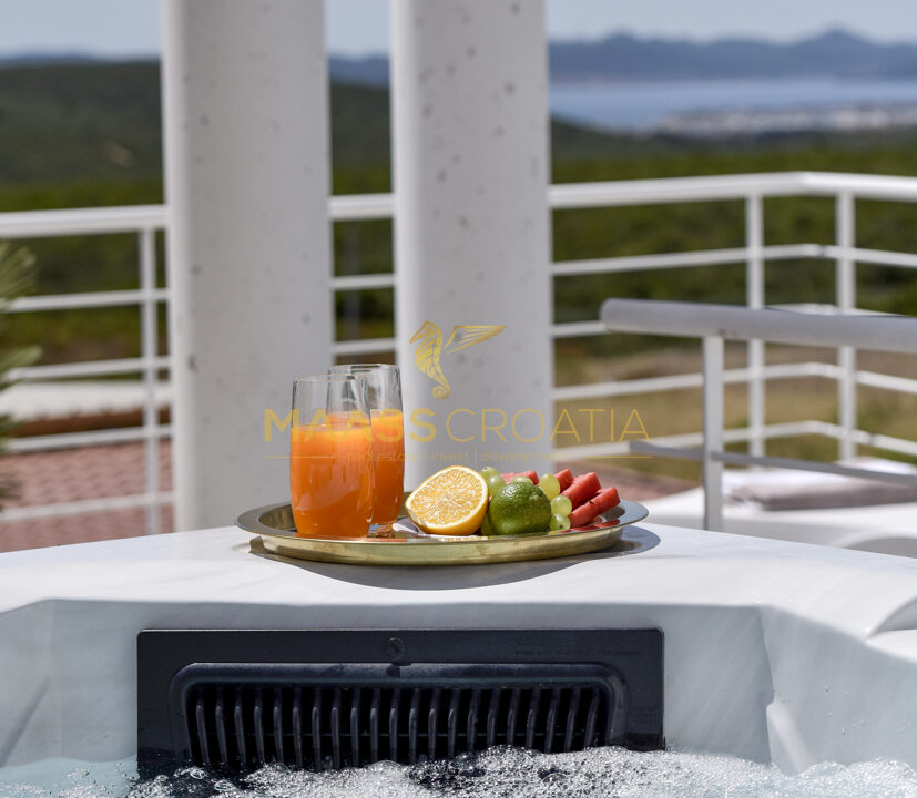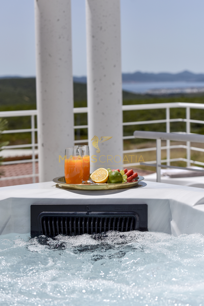 Op dezelfde verdieping is er ook een grote jacuzzi, die een royaal panoramisch uitzicht biedt, evenals uitzicht op het zwembad van 32 m² op de begane grond.