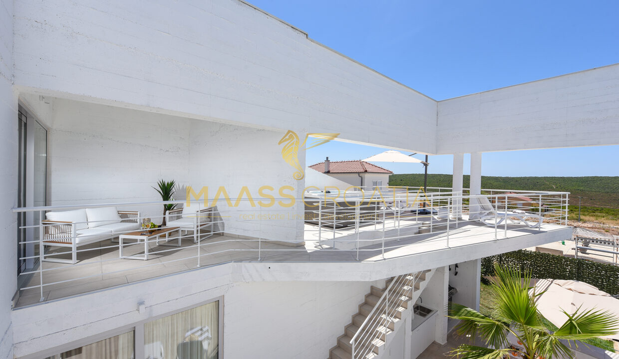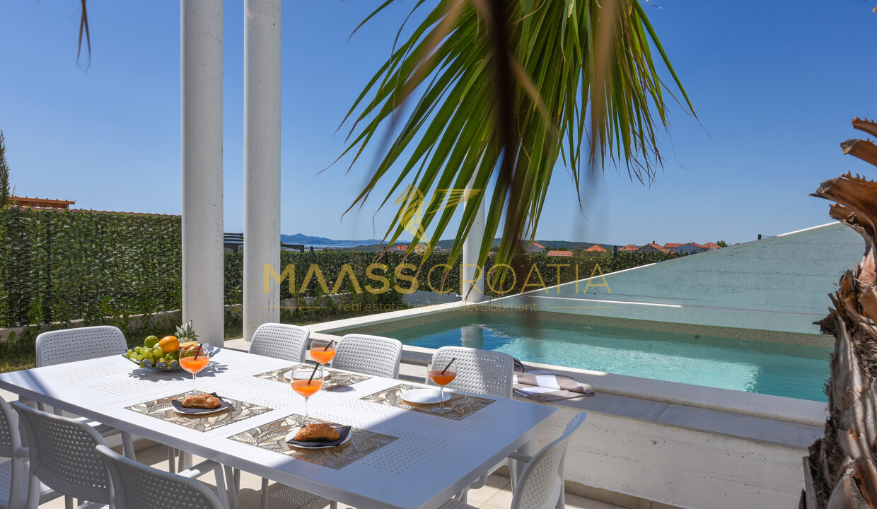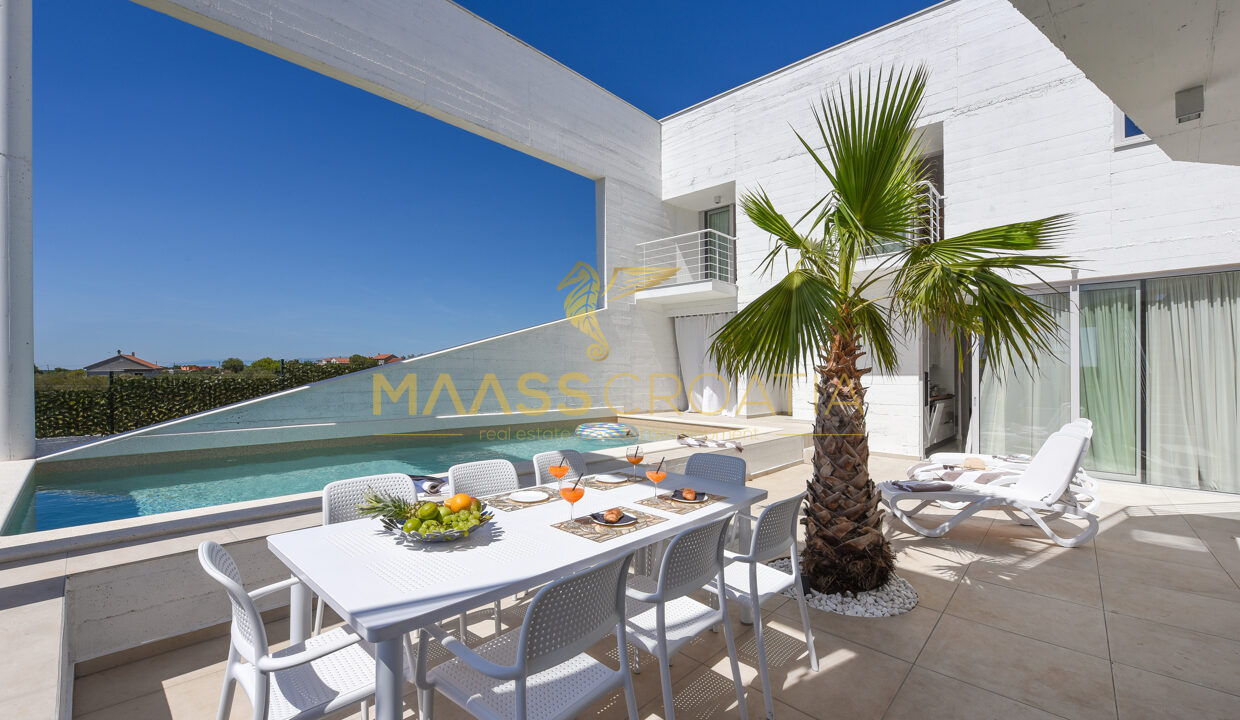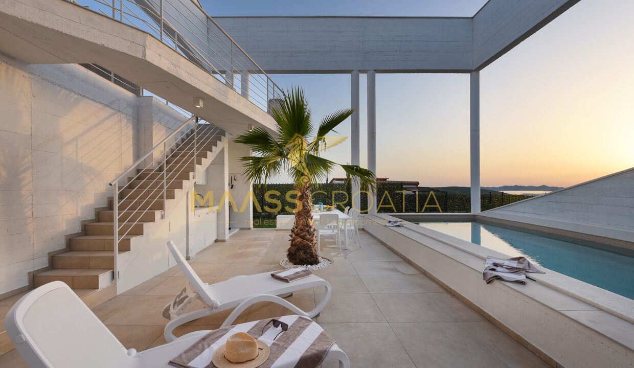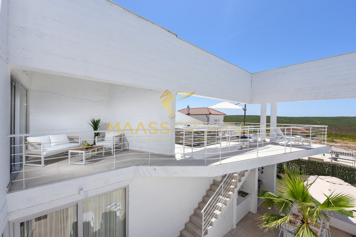 Deze unieke moderne luxe villa heeft zijn plek gevonden in het rustige dorpje Debeljak, vlakbij Zadar.