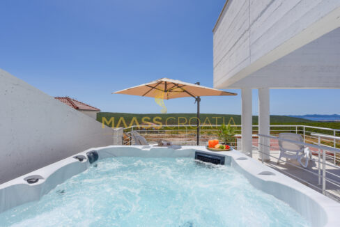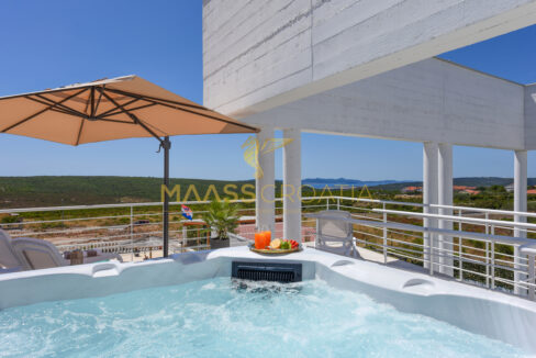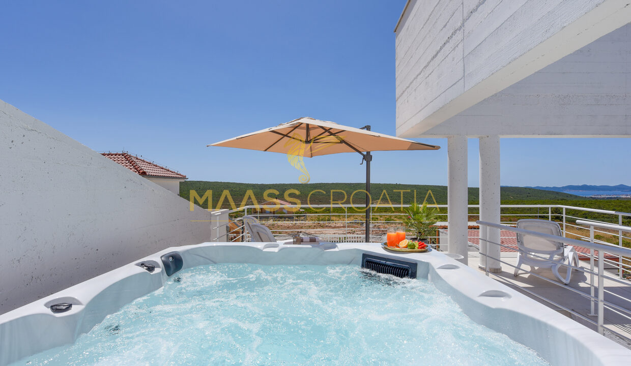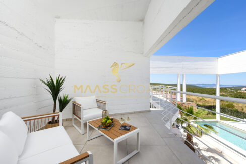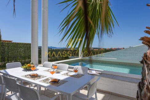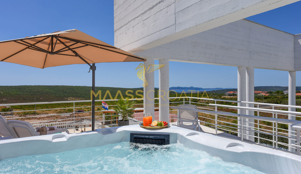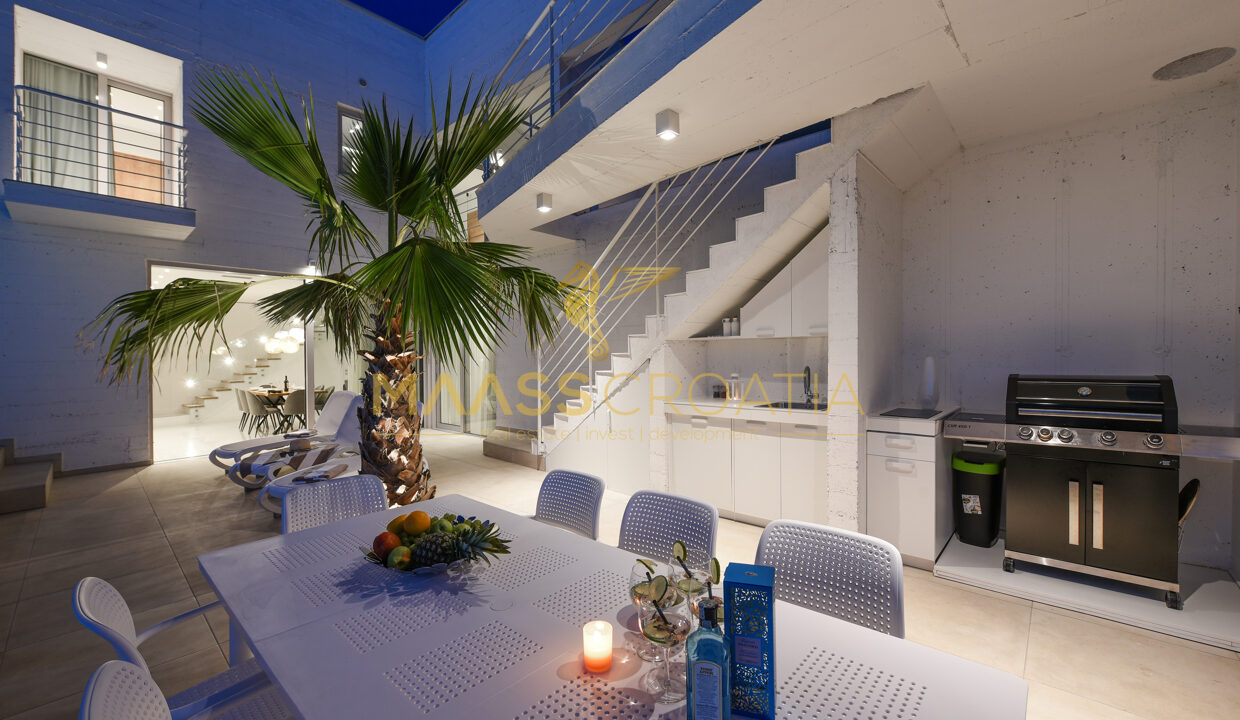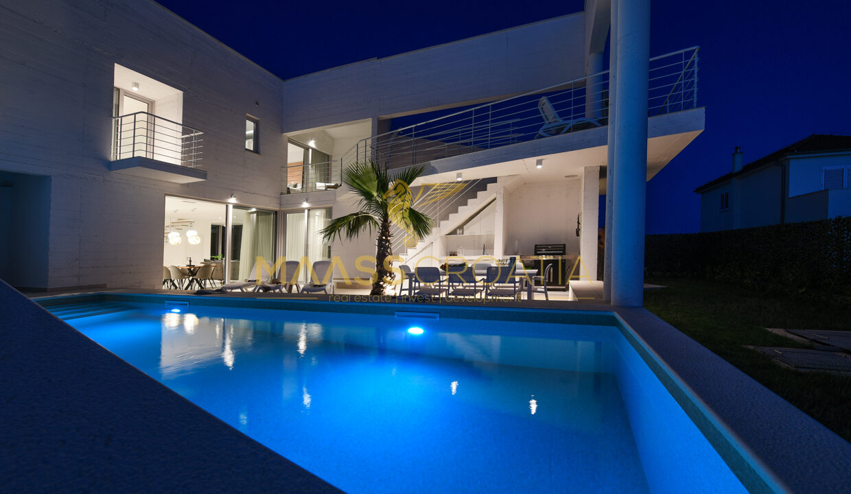 Deze unieke moderne luxe villa heeft zijn plek gevonden in het rustige dorpje Debeljak, vlakbij Zadar.