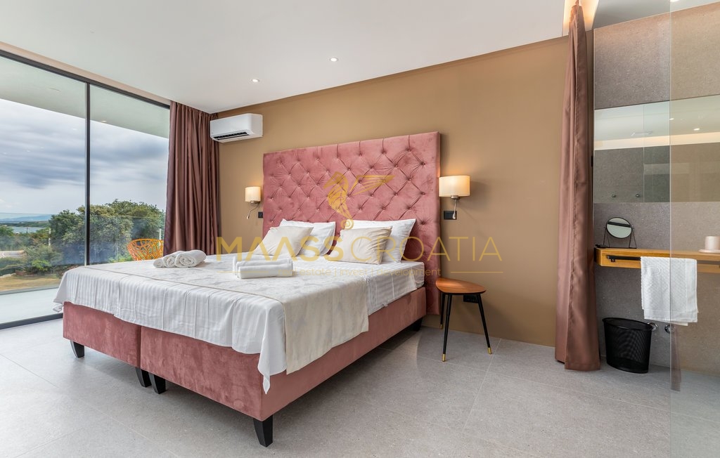 Deze architectonische schoonheid biedt een geweldig uitzicht op de zee en de eilanden Cres en Lošinj. Het huis is nieuw en werd halverwege 2021 opgeleverd.