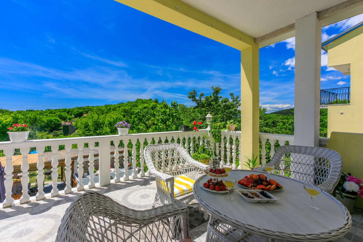 Jadranovo, geweldige locatie! Uitzicht op de zee en het eiland Krk! Het appartement van 73 m2 bevindt zich op de begane...