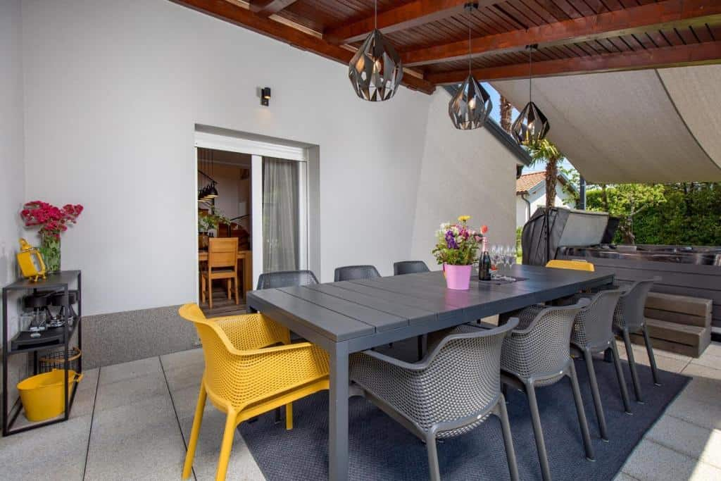 Das Haus ist mit modernen Annehmlichkeiten wie einer Klimaanlage, Kameras für zusätzliche Sicherheit und einer Terrasse ausgestattet, auf der Sie im Freien speisen oder einfach mit einem Buch entspannen können. Der gepflegte Garten trägt zum Charme des Anwesens bei und bietet einen friedlichen Rückzugsort abseits des hektischen Stadtlebens.