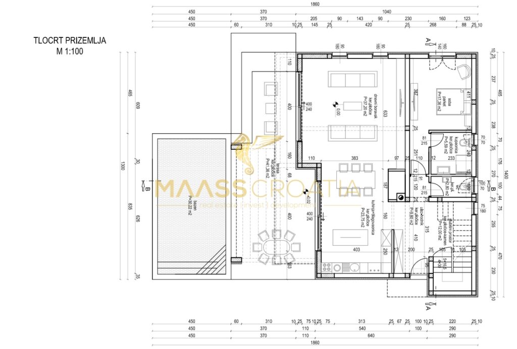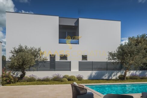 In Lozovac staat een vrijstaand huis met moderne architectuur en functionele kamerindeling met zwembad en een totale bruikbare oppervlakte van 242,28 m², gelegen op een perceel van 727 m².