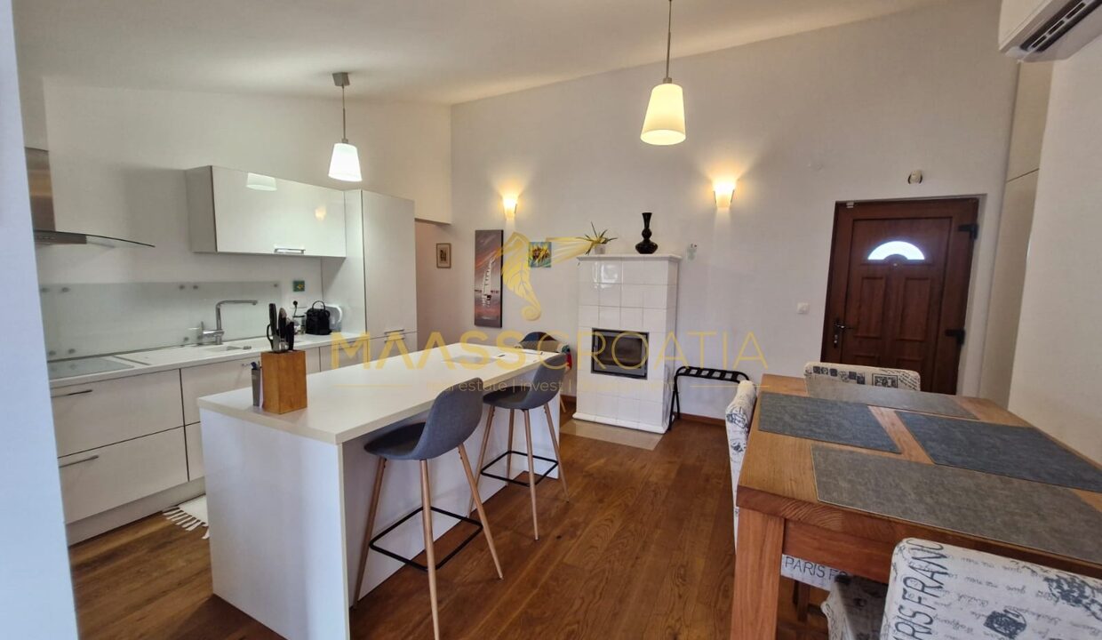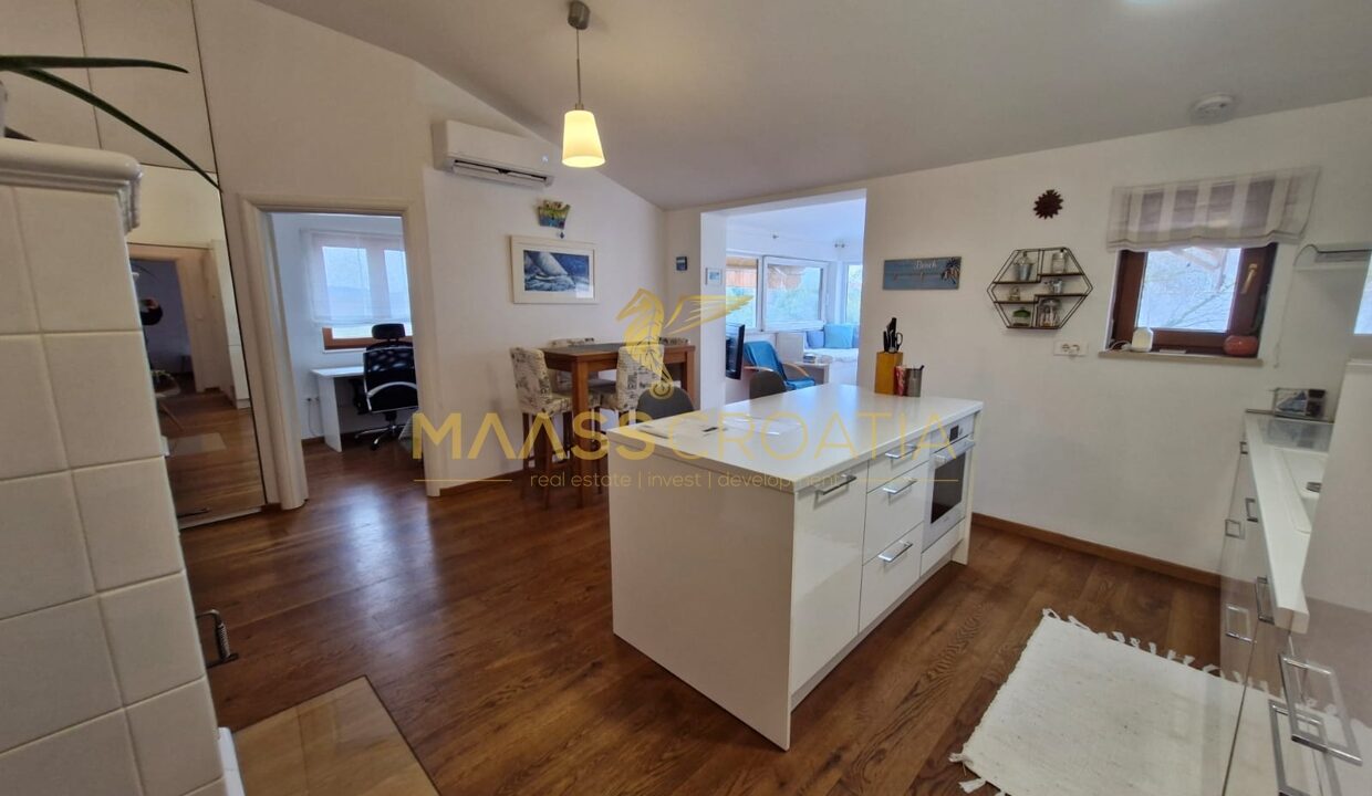 Jadranovo, geweldige locatie! Uitzicht op de zee en het eiland Krk! Het appartement van 73 m2 bevindt zich op de begane...