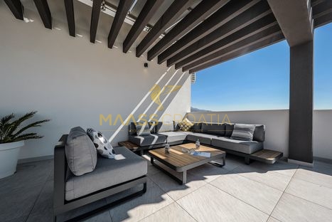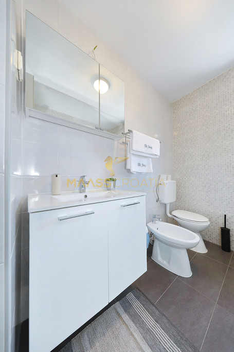 Vanuit de hal is er toegang tot een groot dakterras met een prachtig uitzicht op de zee en het Velebit-gebergte.