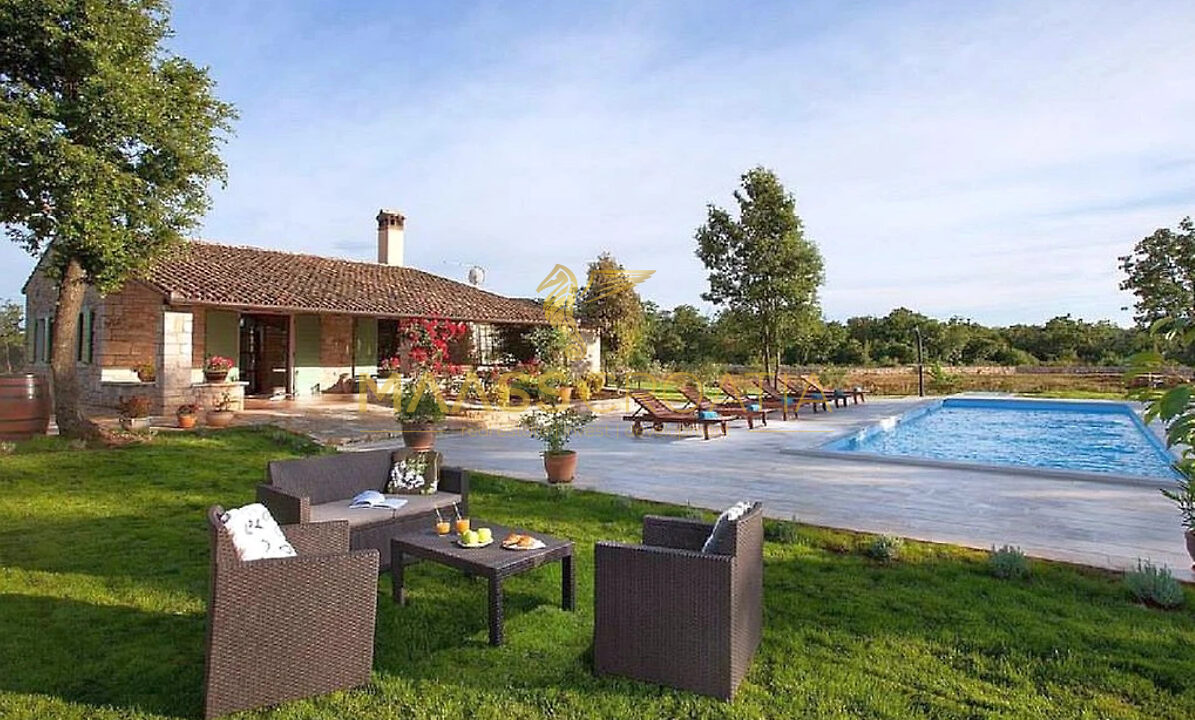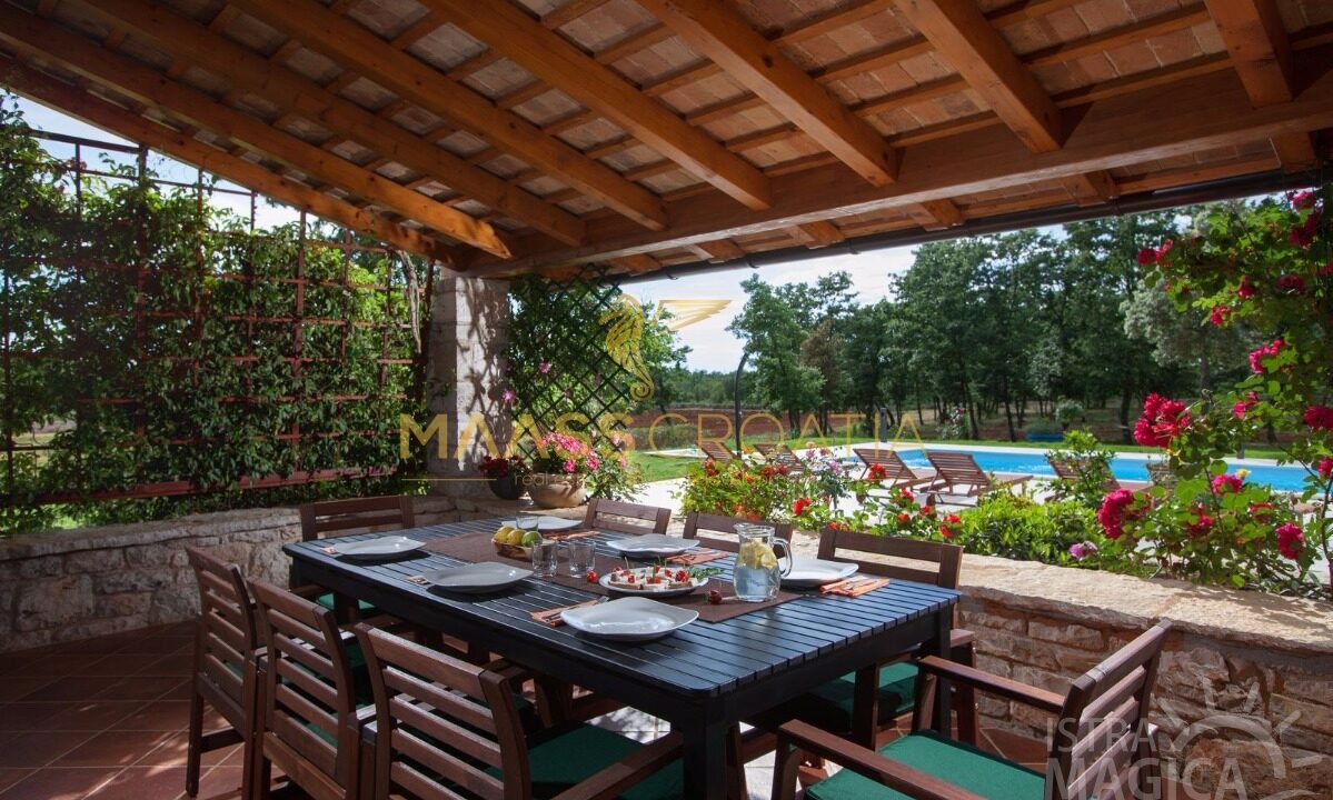 Het object bestaat uit een stenen huis met één verdieping en een overdekt terras in de schaduw van een pergola – ideaal om te genieten van de rust en het uitzicht op het omringende platteland.