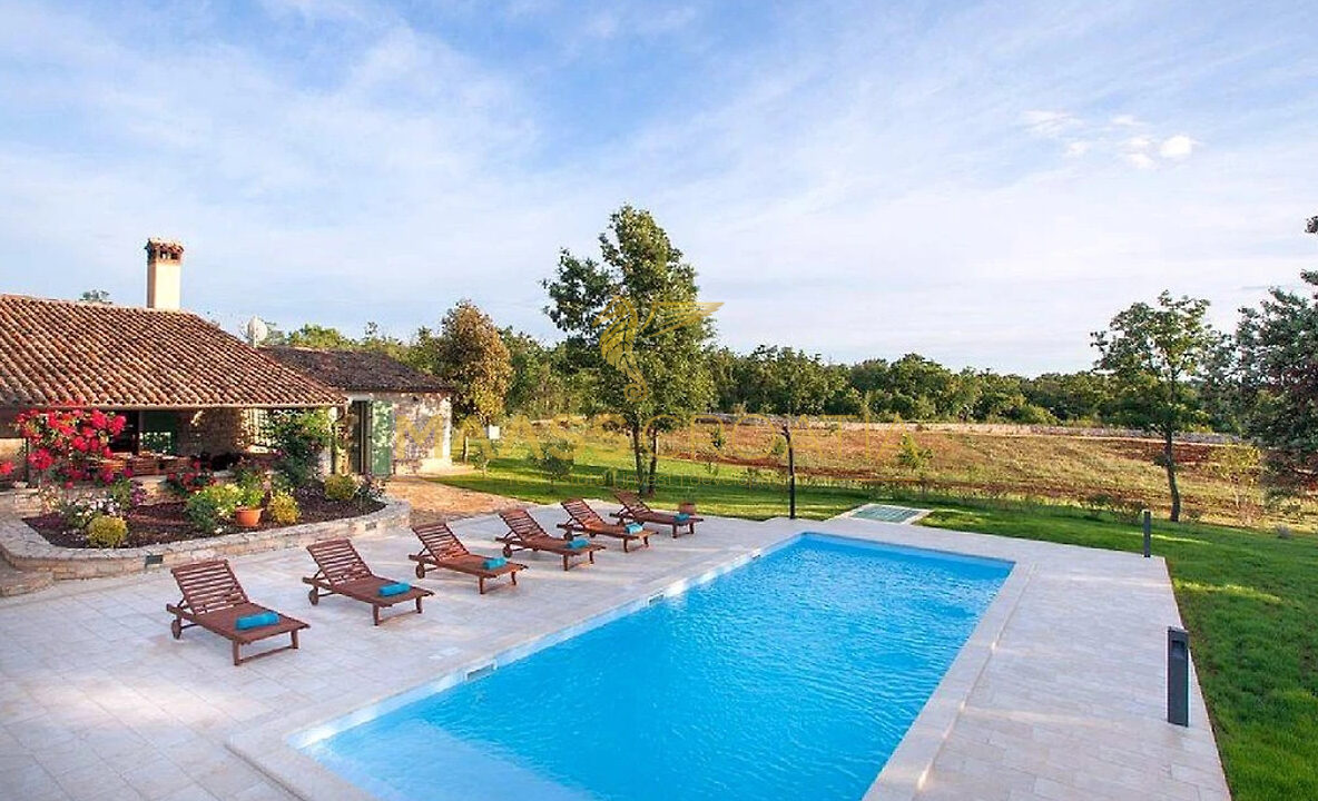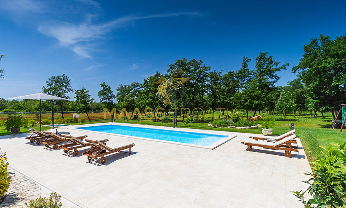 Voor het huis ligt een zwembad van 53 m² met een betegelde ligweide, terwijl achter het huis een zomerkeuken ligt die indien gewenst kan worden omgebouwd tot een apart appartement.
