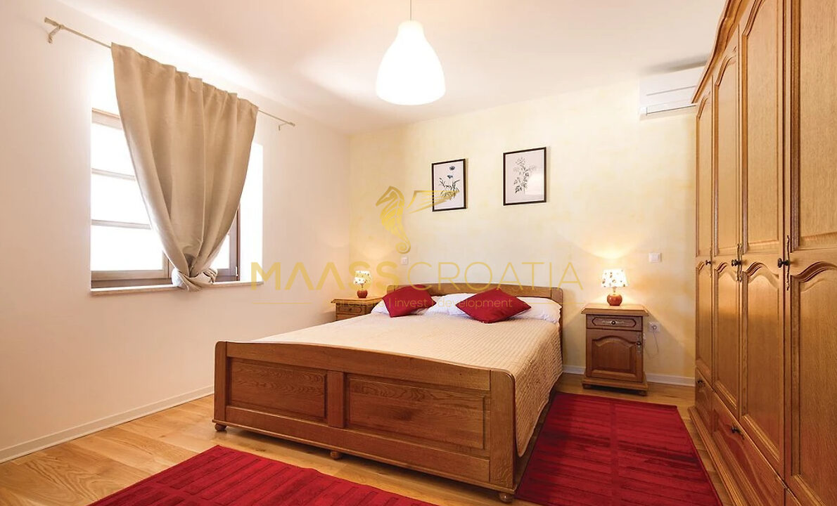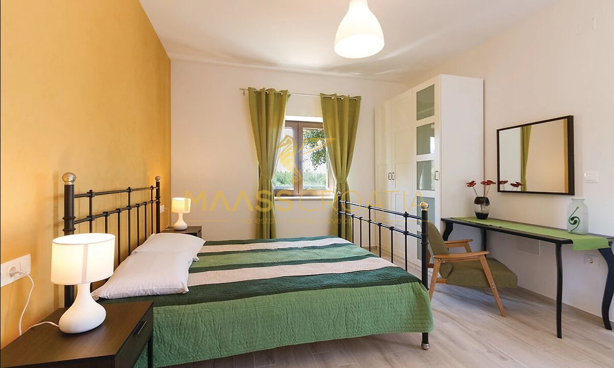 Het huis is volledig gemeubileerd en uitgerust en heeft drie slaapkamers – waarvan twee met eigen badkamer – evenals een extra badkamer naast de derde slaapkamer en een ruime woonkamer met keuken en een authentieke stenen open haard.