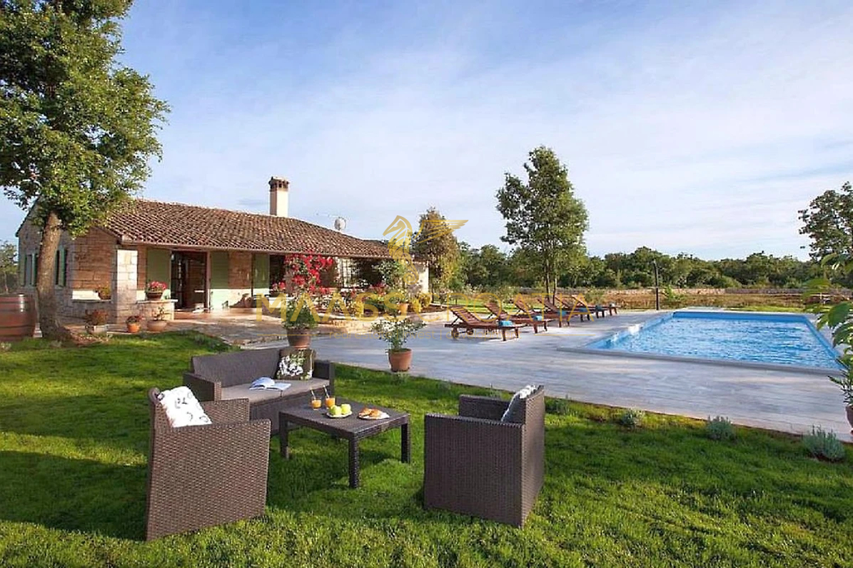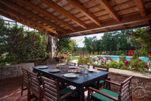 Het object bestaat uit een stenen huis met één verdieping en een overdekt terras in de schaduw van een pergola – ideaal om te genieten van de rust en het uitzicht op het omringende platteland.