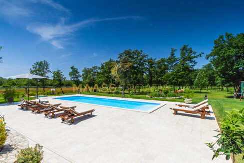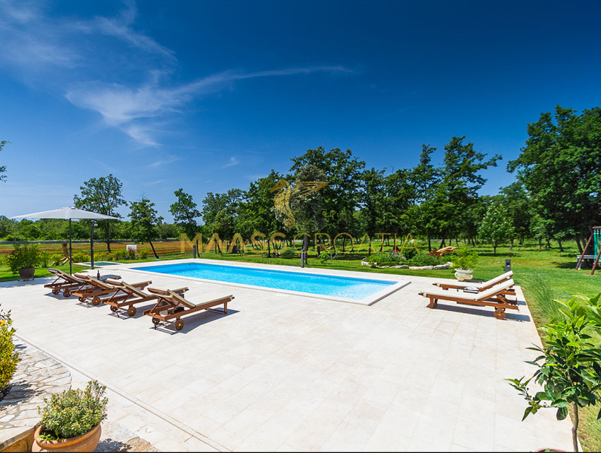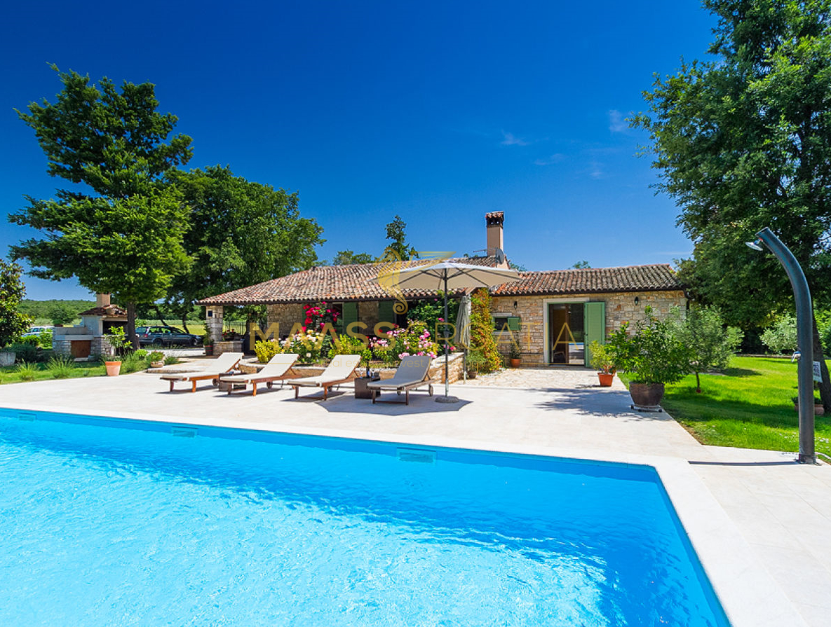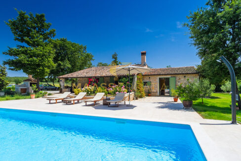 Voor het huis ligt een zwembad van 53 m² met een betegelde ligweide, terwijl achter het huis een zomerkeuken ligt die indien gewenst kan worden omgebouwd tot een apart appartement.