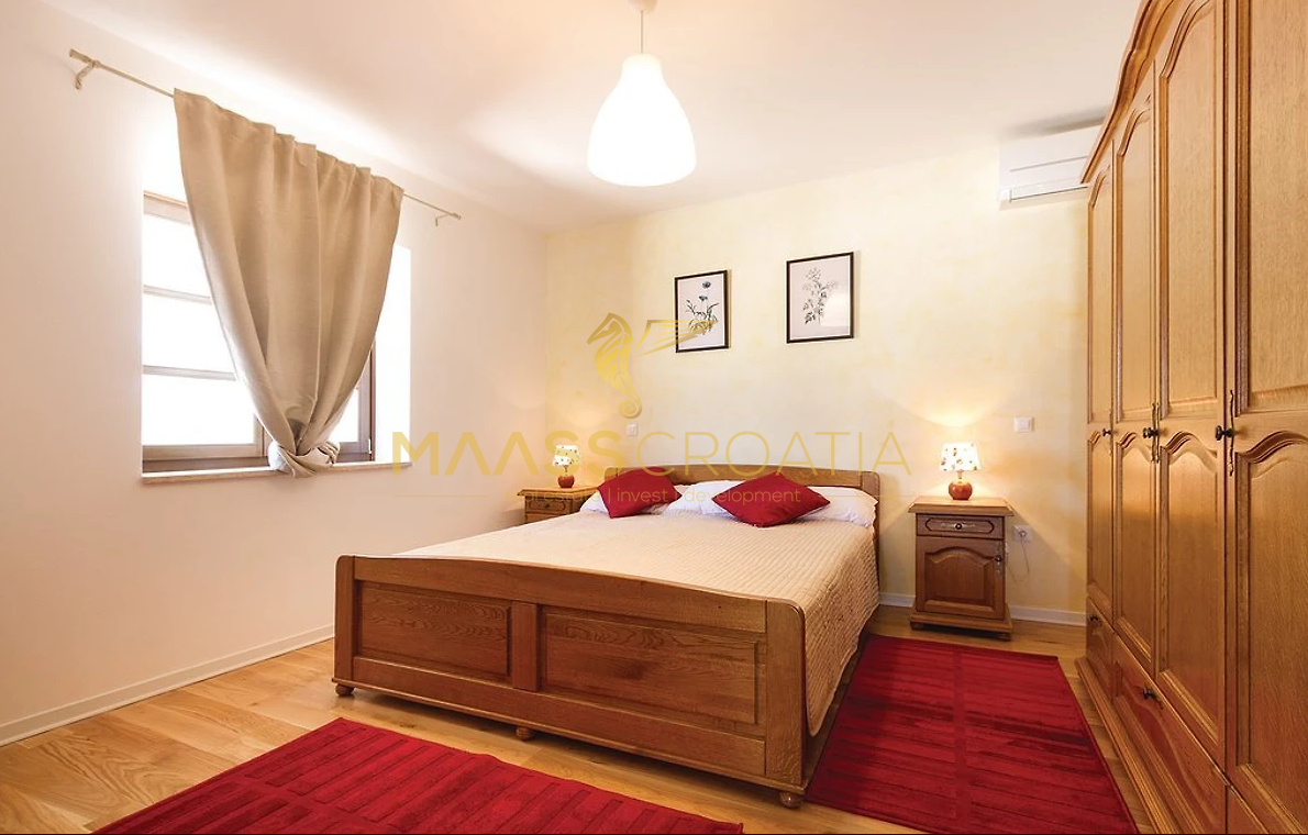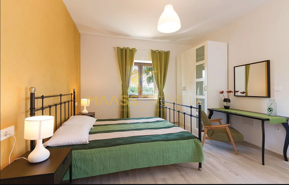 Het huis is volledig gemeubileerd en uitgerust en heeft drie slaapkamers – waarvan twee met eigen badkamer – evenals een extra badkamer naast de derde slaapkamer en een ruime woonkamer met keuken en een authentieke stenen open haard.