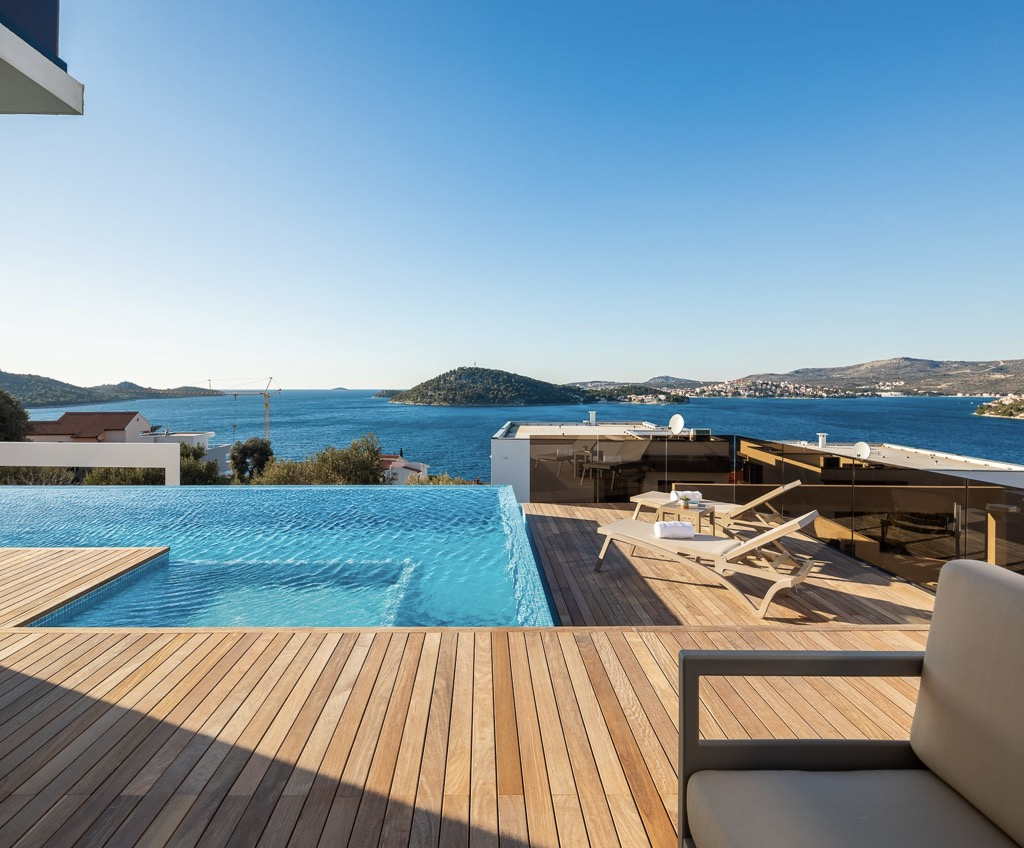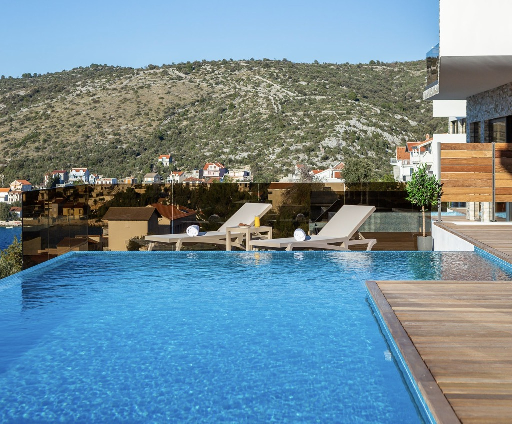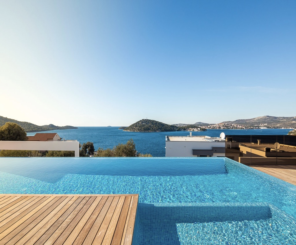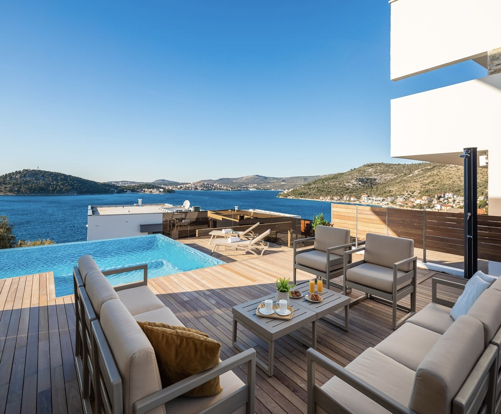 Op slechts 80 meter van de sprankelende Adriatische Zee in Rogoznica biedt deze prachtige moderne villa een luxe toevluchtsoord voor wie op zoek is naar een mix van ontspanning en verfijning.