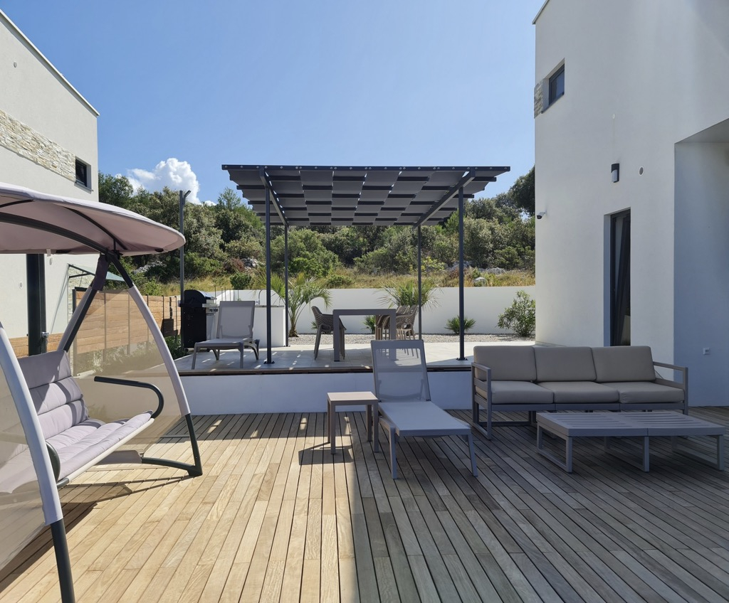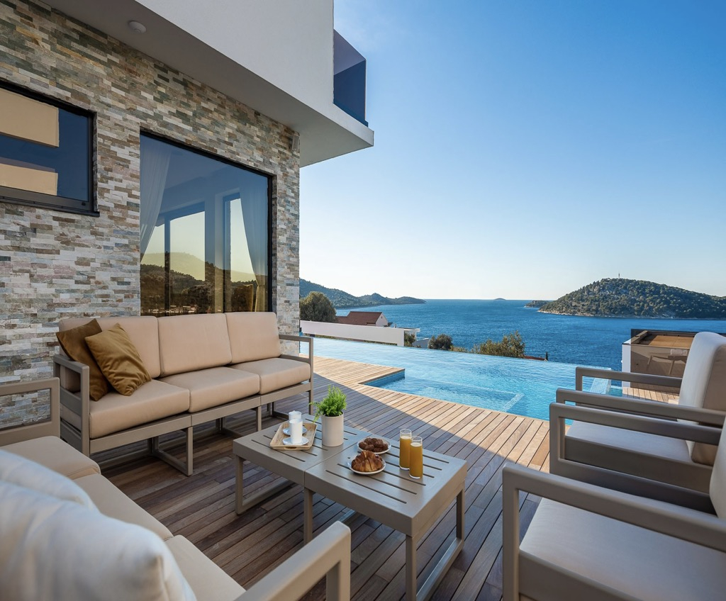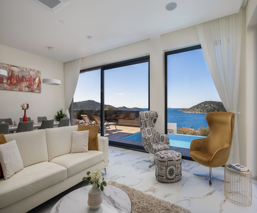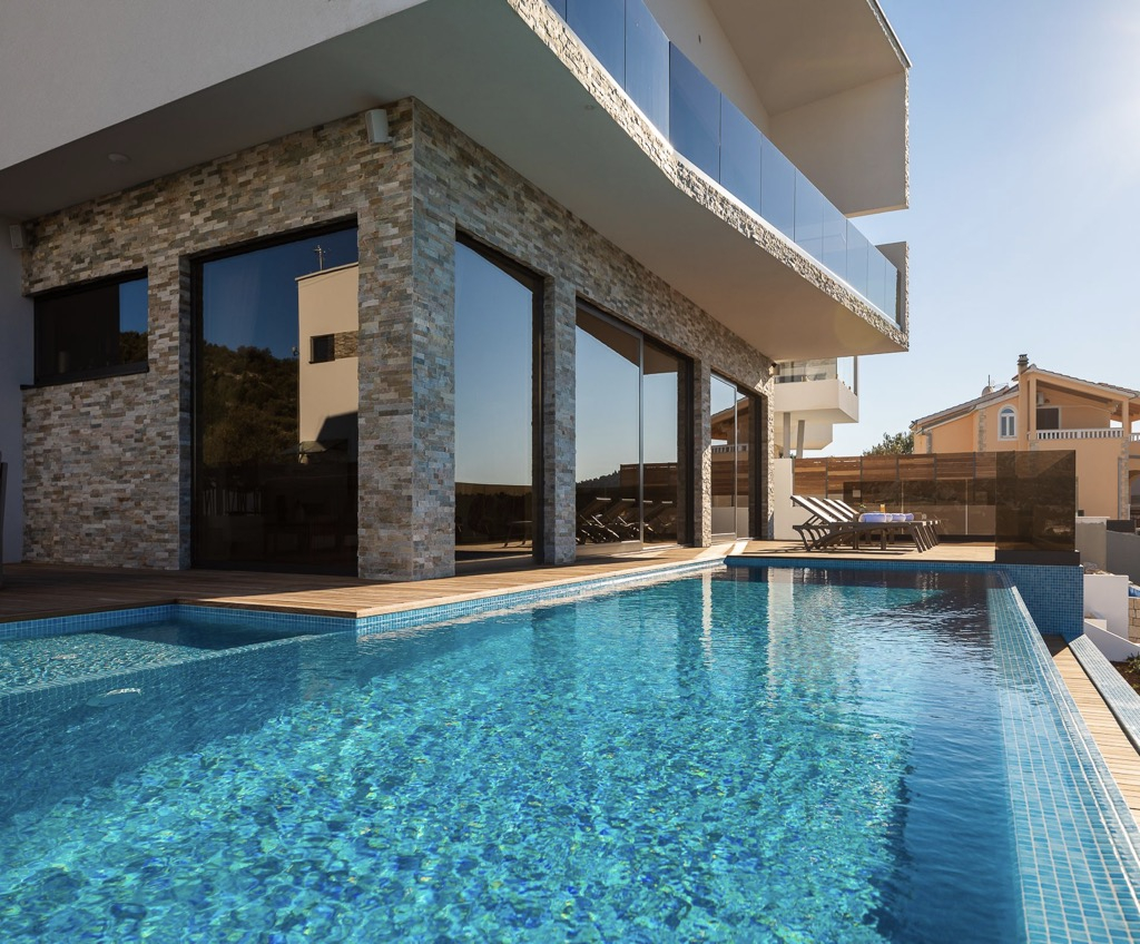 Op slechts 80 meter van de sprankelende Adriatische Zee in Rogoznica biedt deze prachtige moderne villa een luxe toevluchtsoord voor wie op zoek is naar een mix van ontspanning en verfijning.