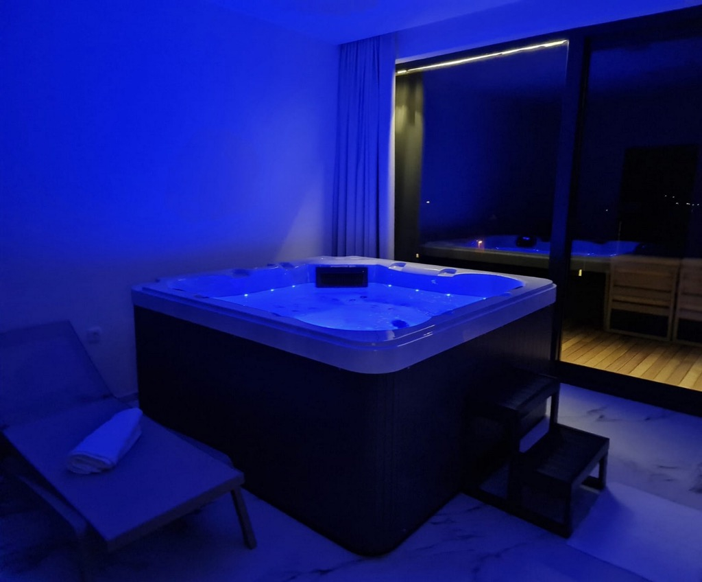 Deze villa is een ware oase van ontspanning en welzijn, met een jacuzzi en een sauna.