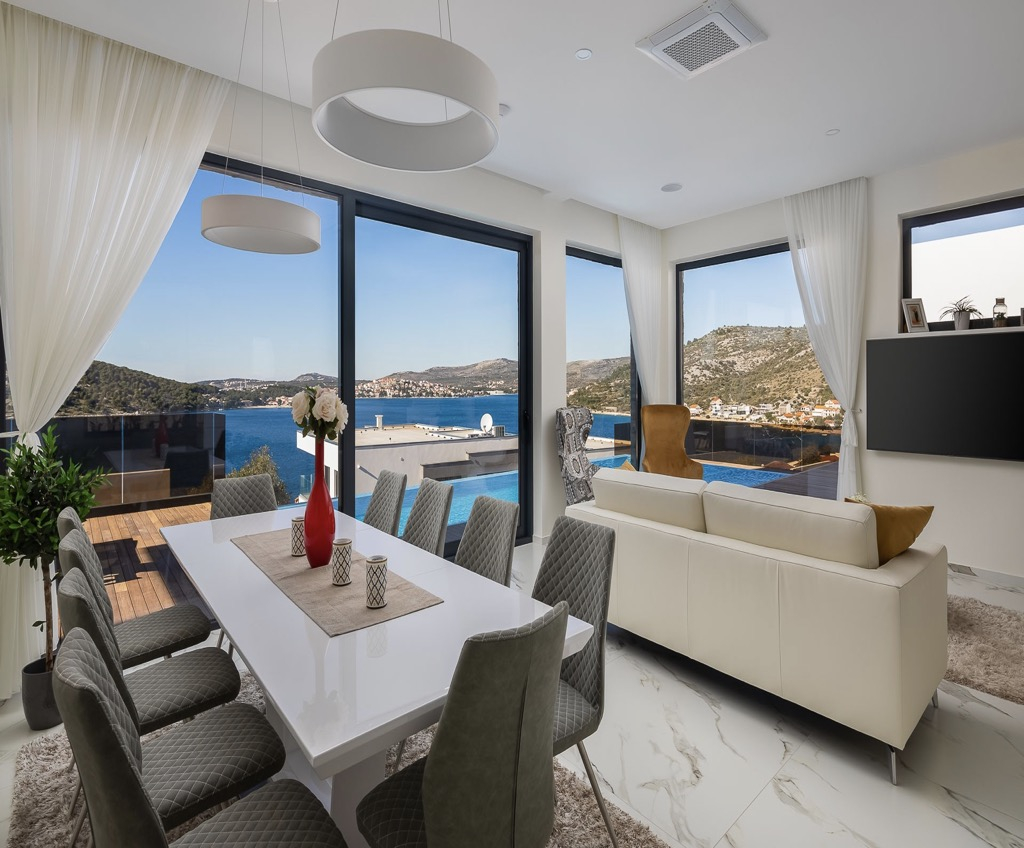 Met zijn strakke, moderne design, gunstige ligging en overvloed aan luxe voorzieningen zal deze villa met zeezicht in Rogoznica zeker een blijvende indruk achterlaten.