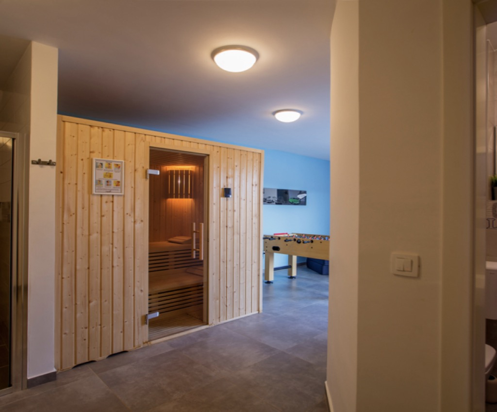 Er is ook een speelkamer met een pooltafel en een sauna die ook gebruikt kan worden.