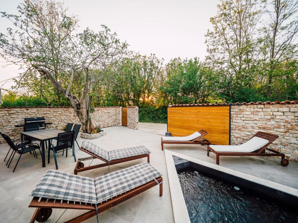 De onderhoudsvriendelijke binnenplaats is volledig omheind en biedt volledige privacy. Er is een zwembad dat vakkundig is ingebed in de plattegrond, een ligweide en een zithoek.