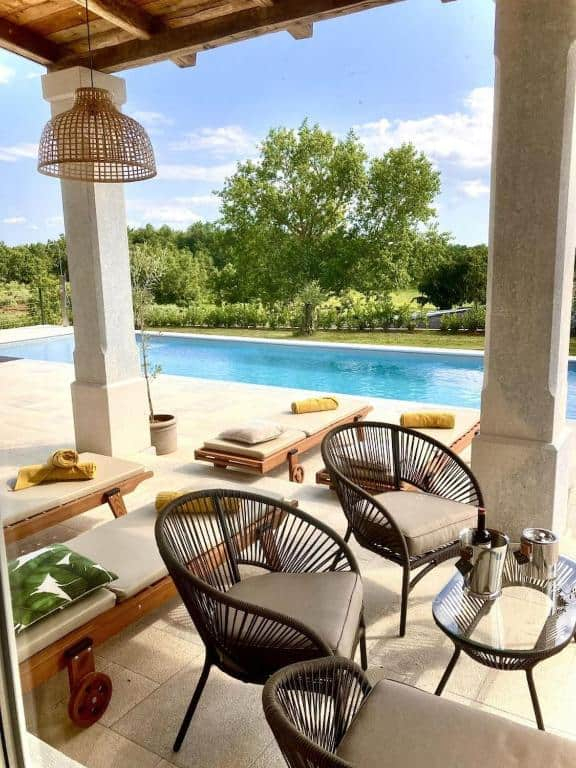 Te koop een mooie moderne villa op 5 km van het centrum van Poreč op een rustige locatie. De villa heeft een...
