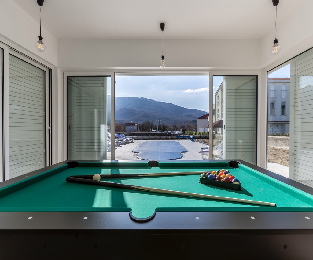 Last but not least is er een grote loungeruimte buiten met een kleine buitenkeuken direct op het terras, evenals een biljartkamer die zeker je aandacht zal trekken!