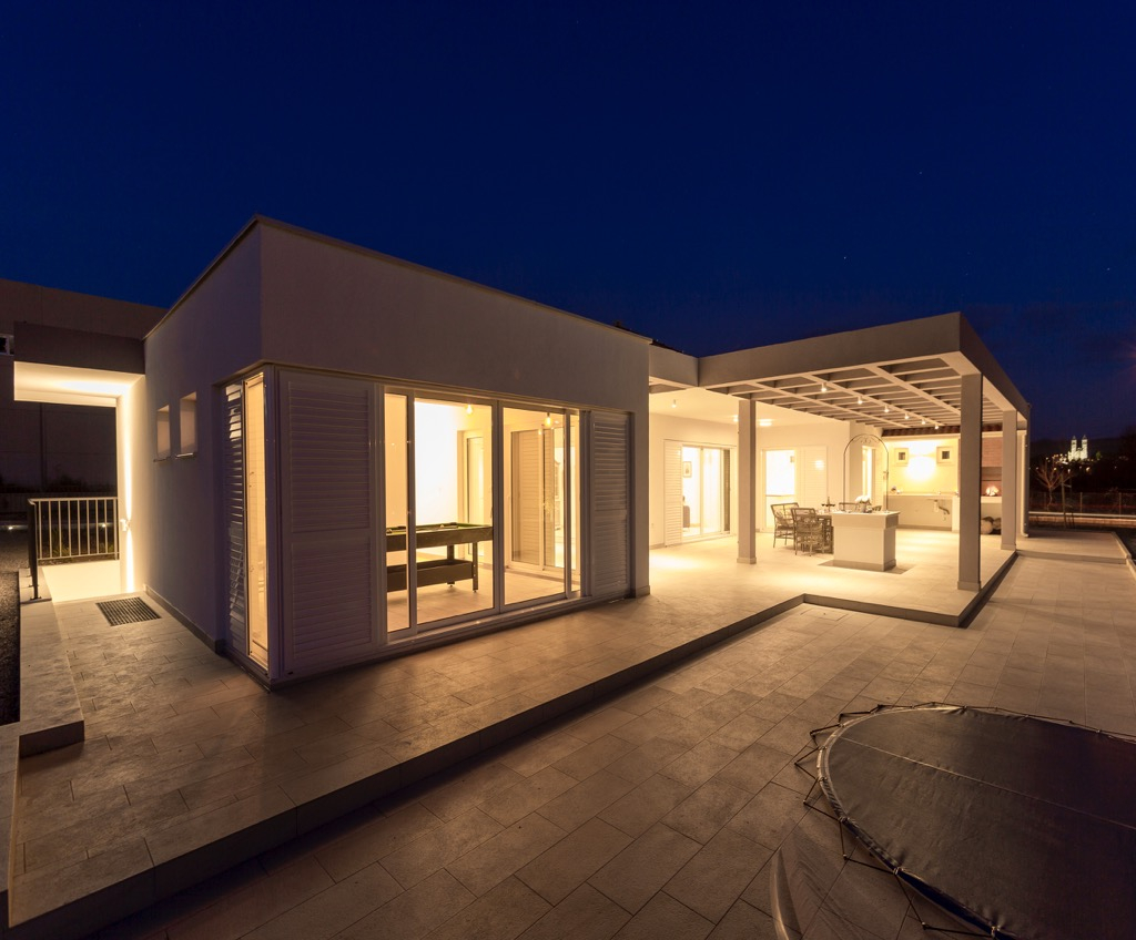 De strakke en eenvoudige lijnen van het architectonische concept geven het huis een luxe en geraffineerd tintje.