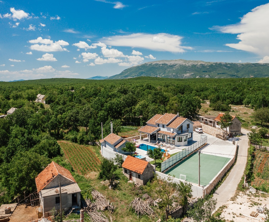 Aangezien het centrum van Imotski op 7 km afstand ligt en de eerste zeekust op 35 km, is deze locatie ideaal voor wie op zoek is naar een meer afgelegen plek om te wonen.