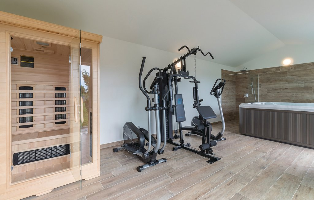 Er is ook een ingebouwde fitnessruimte, sauna, bubbelbad en een broodoven in de keuken.