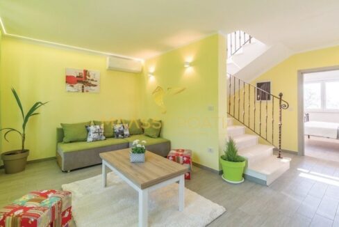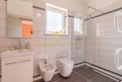 Het bestaat uit een benedenverdieping en een bovenverdieping – op de benedenverdieping is er een ruime woonkamer, een keuken, een eetkamer, een slaapkamer met een badkamer en een gastentoilet. Boven zijn er drie slaapkamers, elk met een eigen badkamer en een terras met uitzicht op zee.