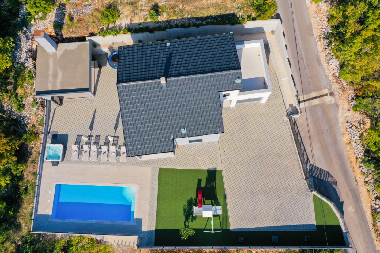 Gebouwd in 2019, is dit twee verdiepingen tellende huis met ca. 10 kamers in Imotski op zoek naar een nieuwe eigenaar!