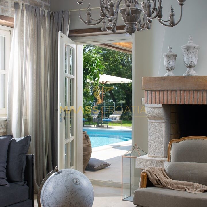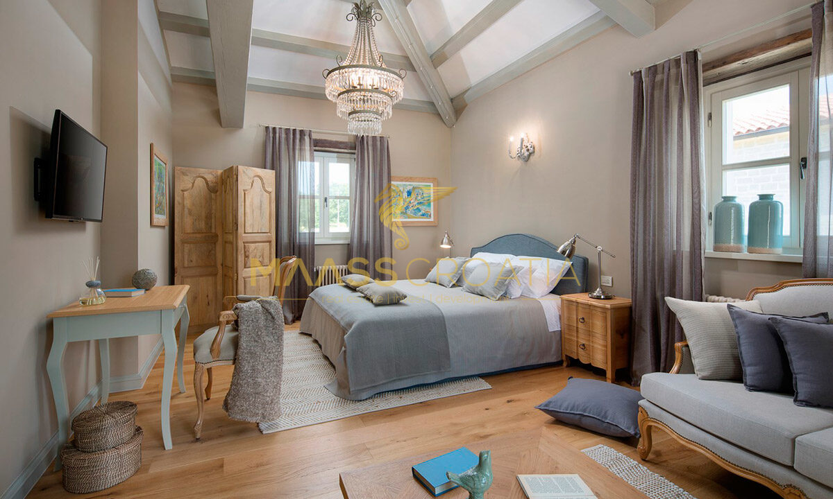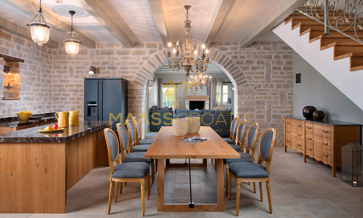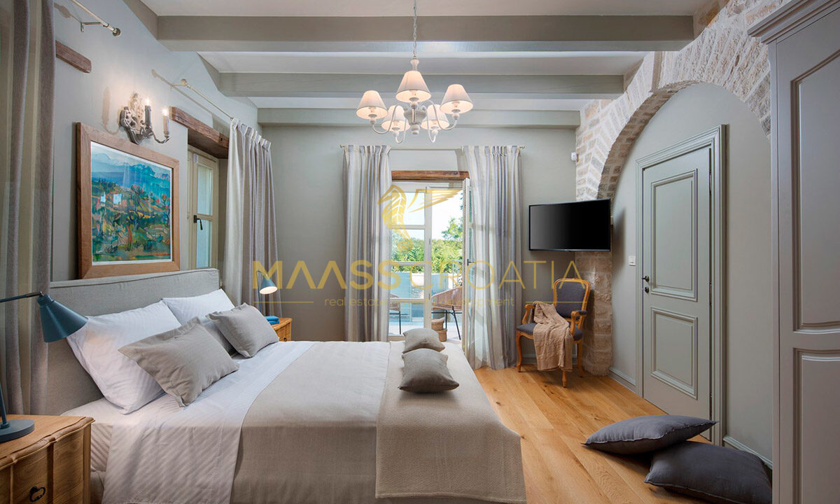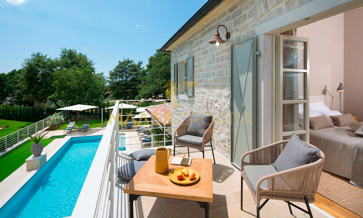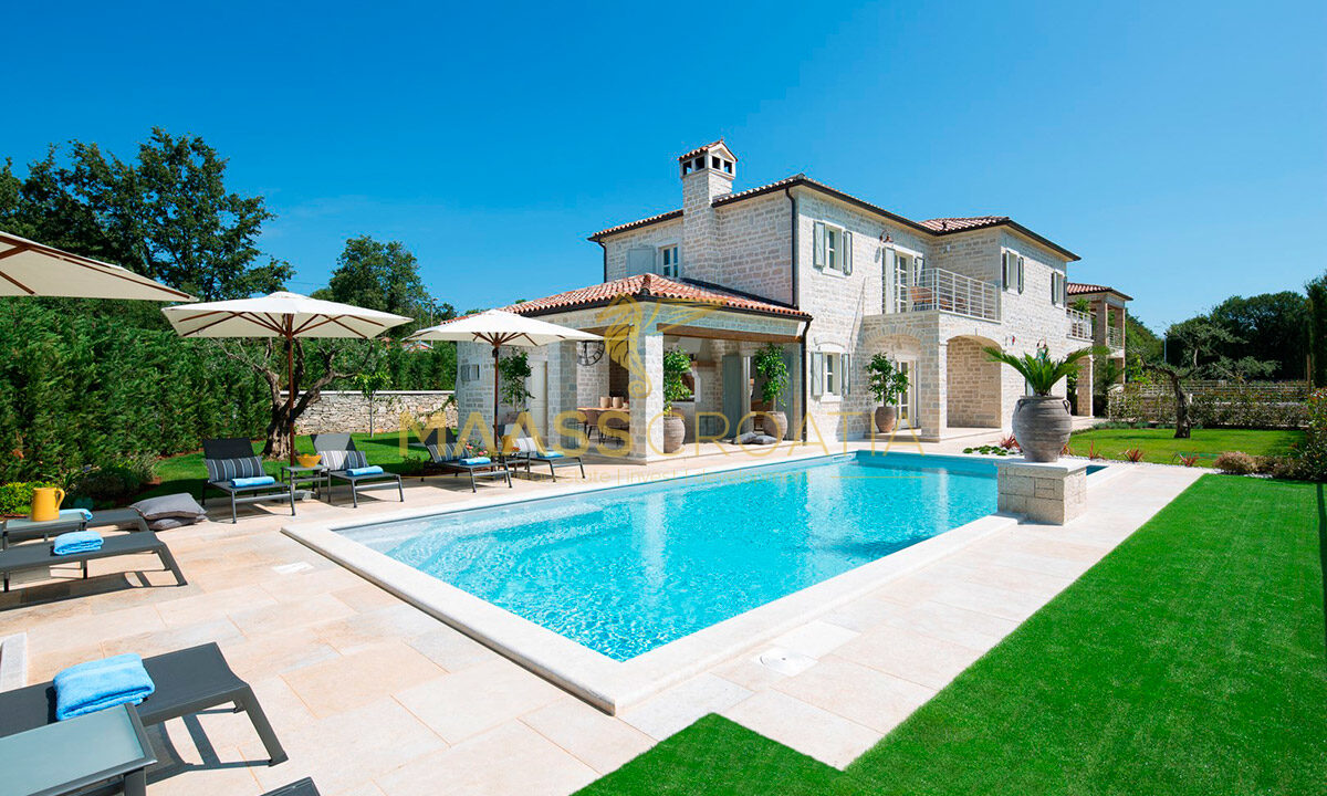 Te koop is een luxe villa met zwembad en 359 m2 woonoppervlak, een tuin van 880 m, 15 km van Poreč en ongeveer 16 km van de zee, met twee volledig van airconditioning voorziene verdiepingen met een capaciteit van 8 personen.