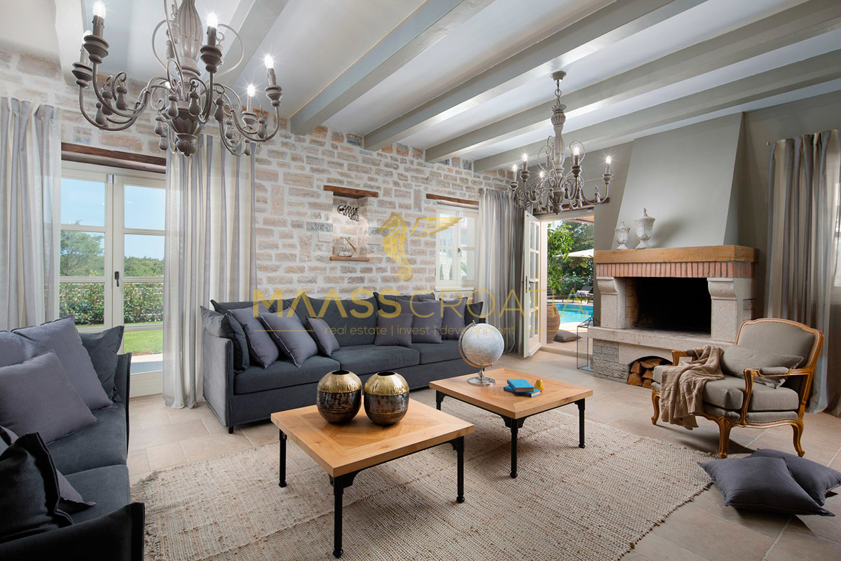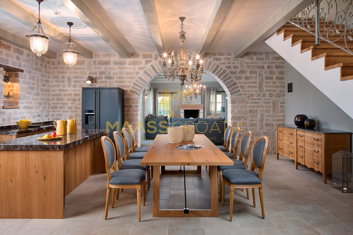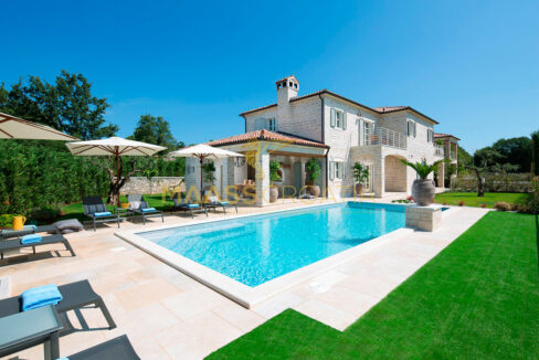 Te koop is een luxe villa met zwembad en 359 m2 woonoppervlak, een tuin van 880 m, 15 km van Poreč en ongeveer 16 km van de zee, met twee volledig van airconditioning voorziene verdiepingen met een capaciteit van 8 personen.