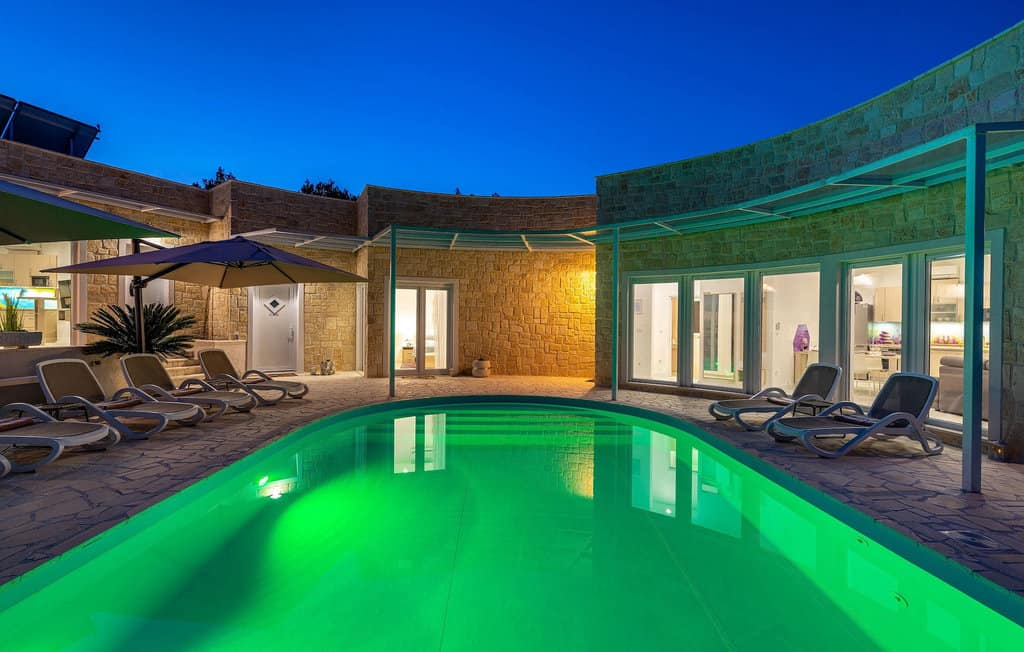 Het strakke en moderne interieur wordt aangevuld met voorzieningen van hoge kwaliteit, zoals een zwembad van 40 m2, perfect voor een verfrissende duik op warme zomerdagen.